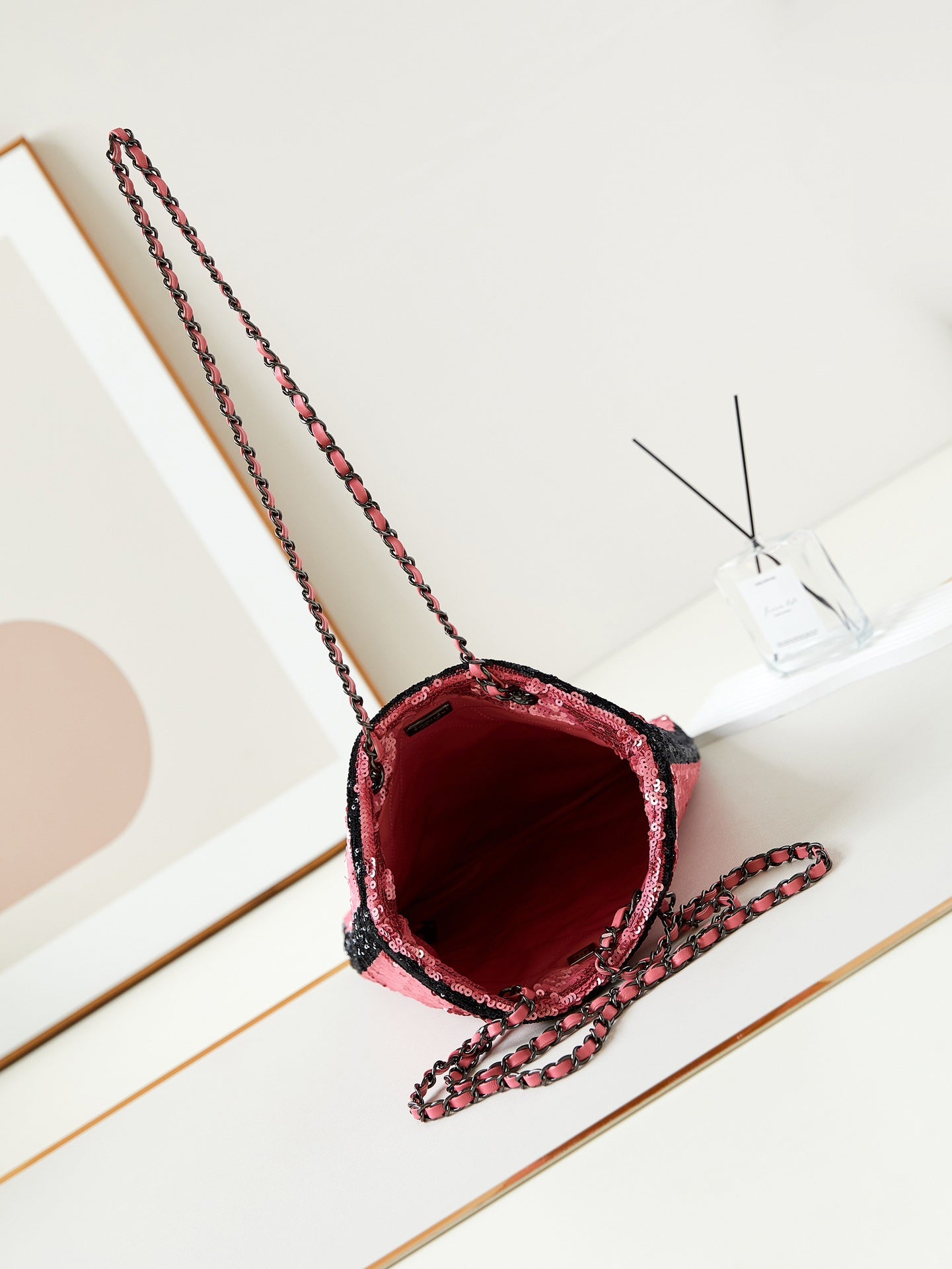 cc 24s31 shopping bag dark pink black sequins black hardware