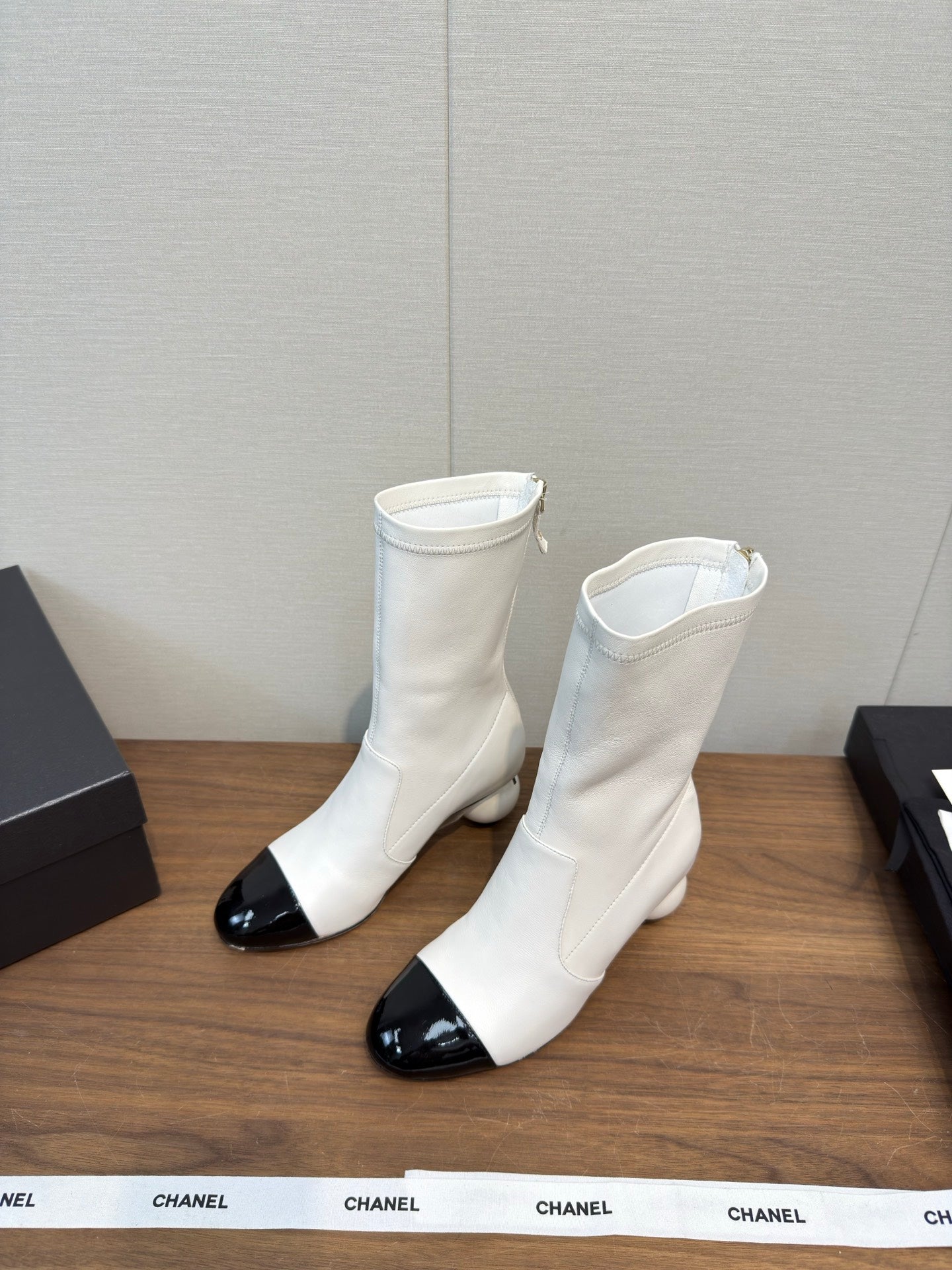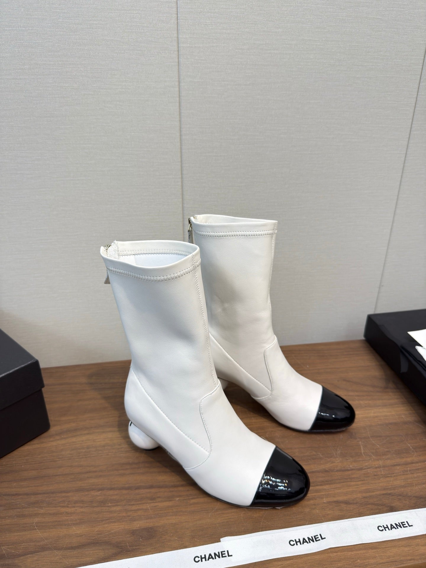 CC 25B Double C Giant Pearl Ankle Boots 50mm White Sheepskin 465703