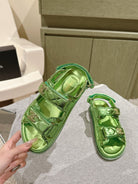 CC 25C Dad Sandals Green Metalic Grained Calfskin 462232
