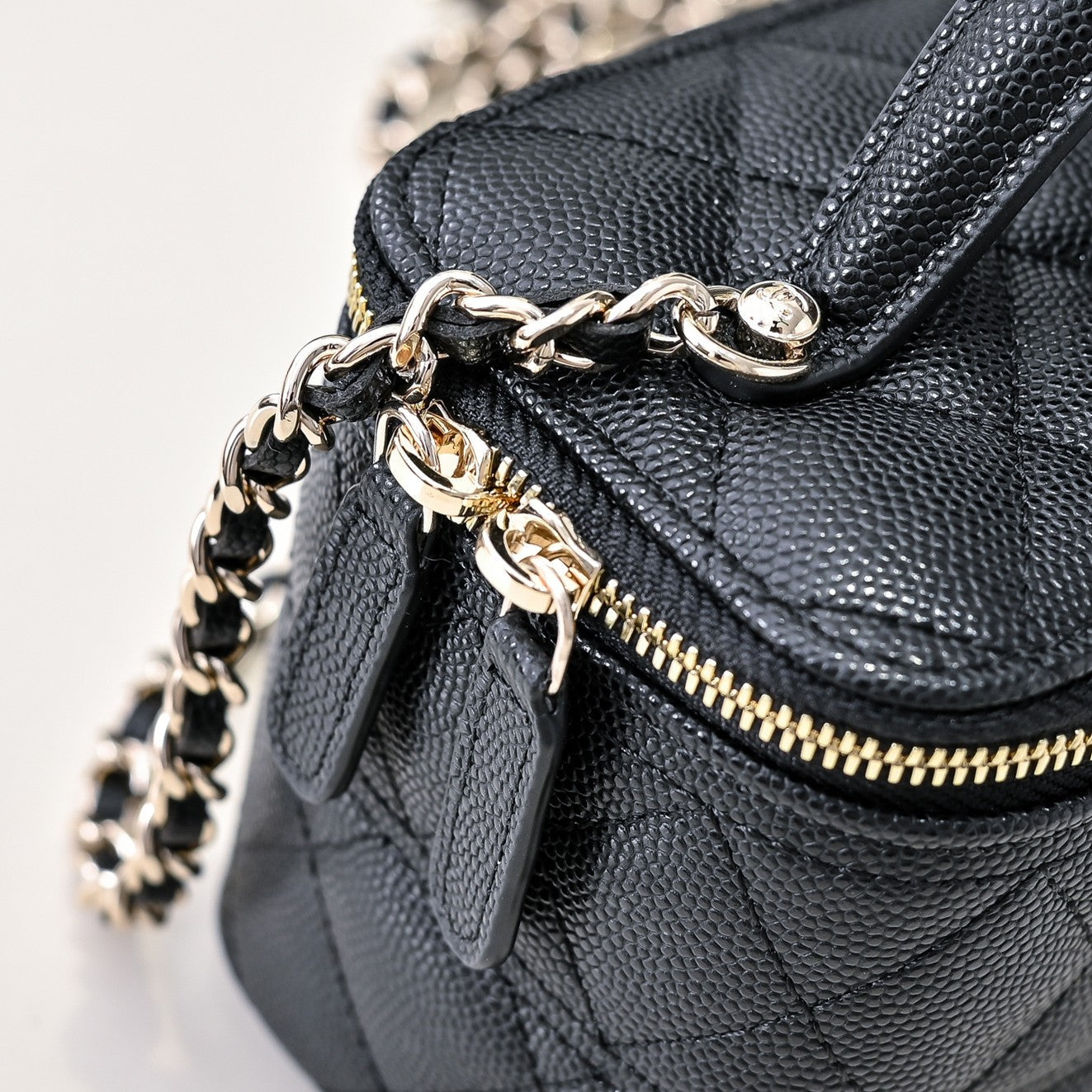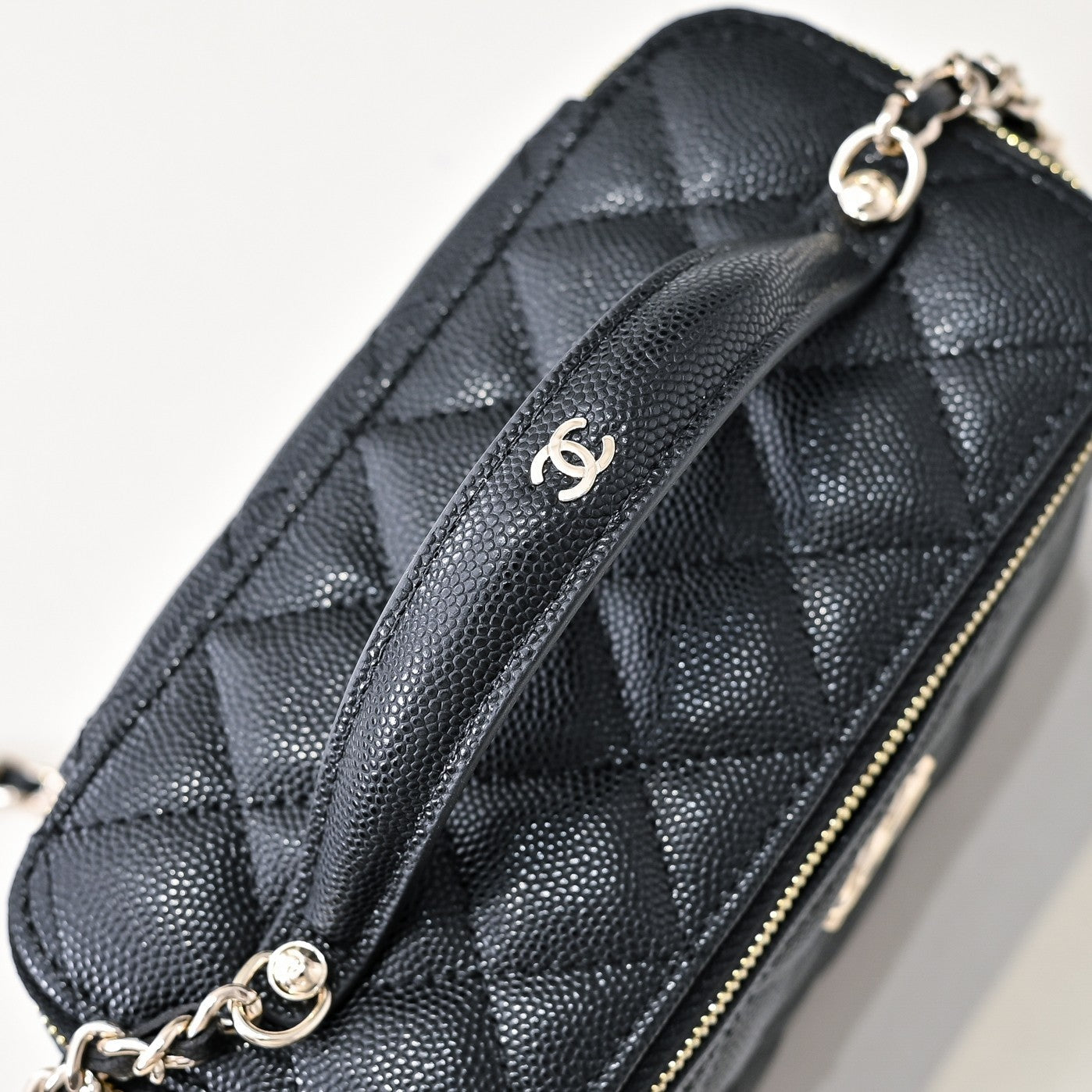CC 25C Vanity Top Handle 17cm Black Grained Calfskin Light Gold Hardware