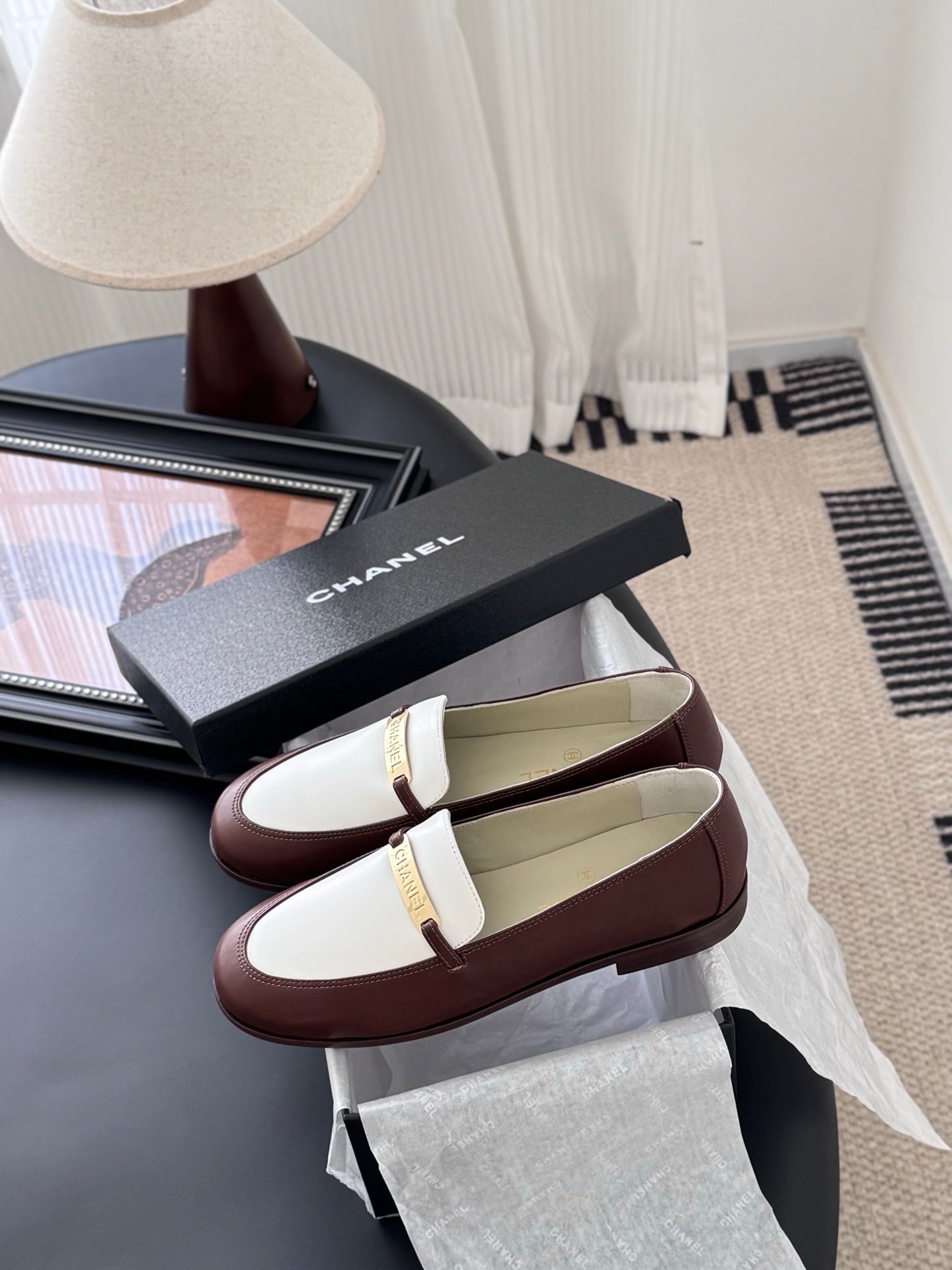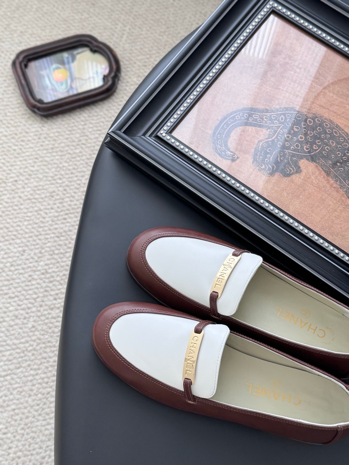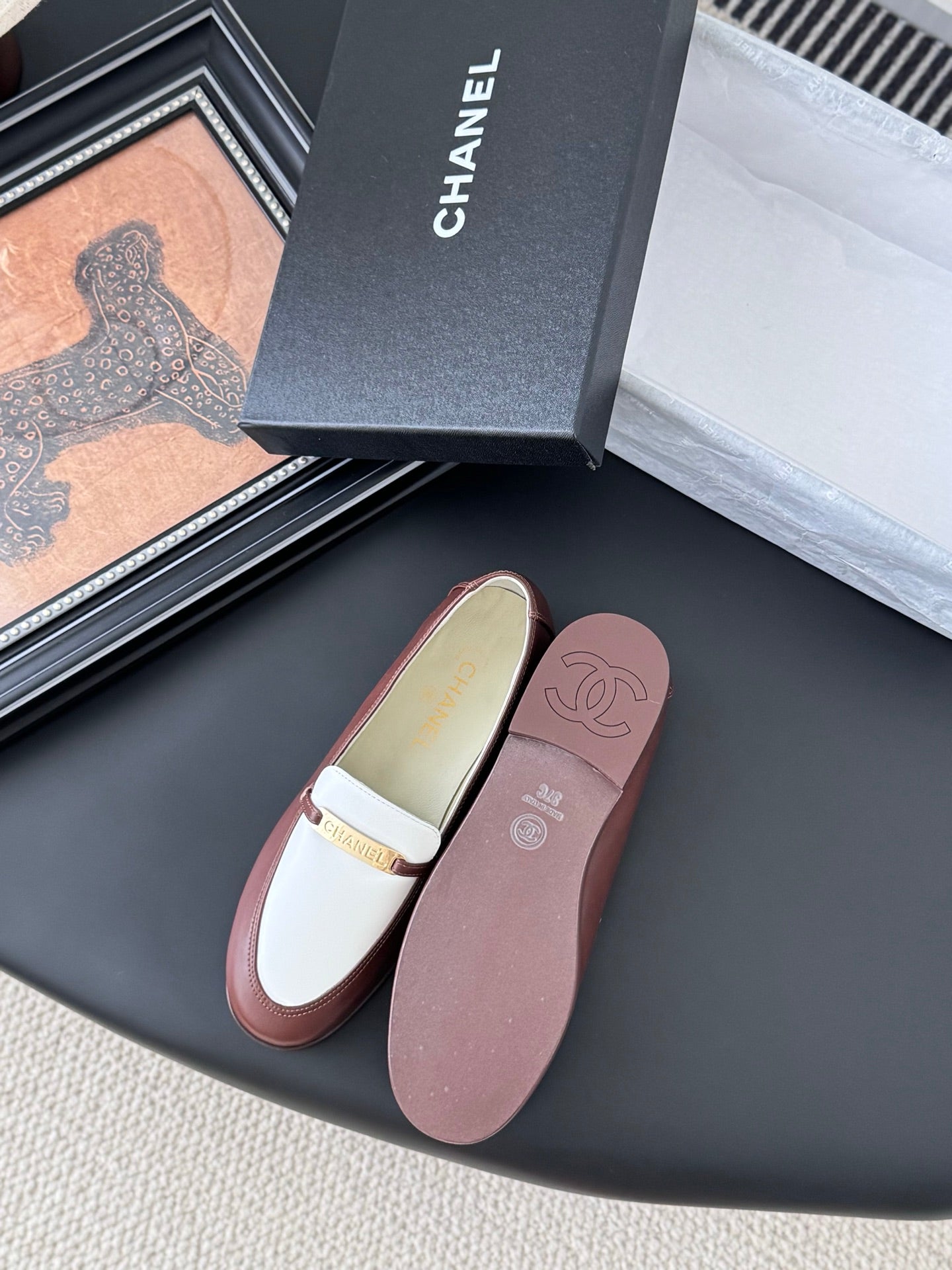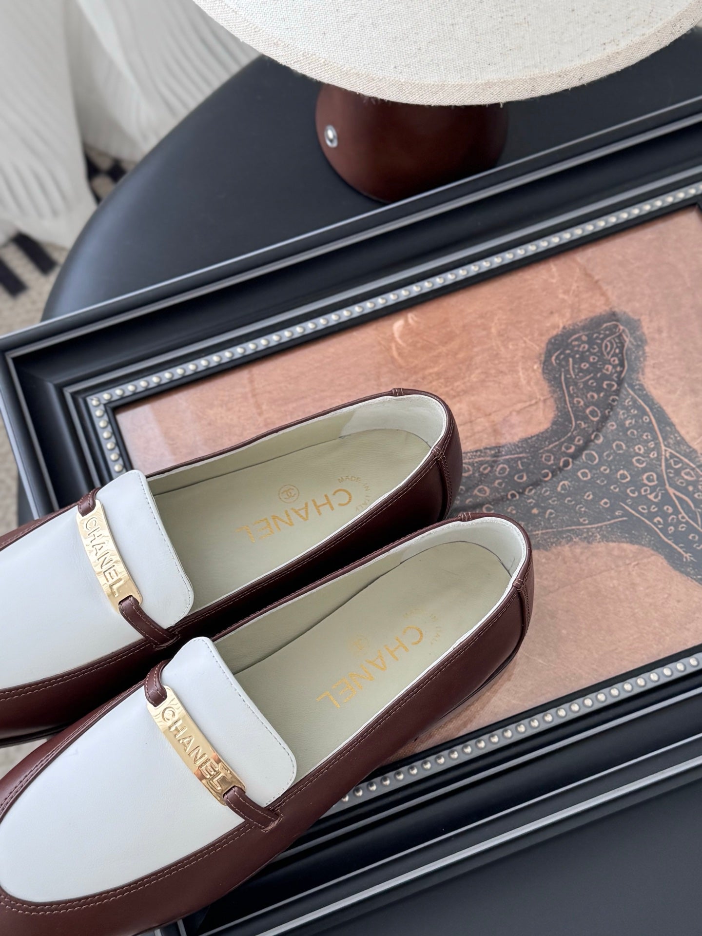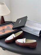 CC 25K Vintage Finition Main Loafers Reddish Brown White Calfskin 458643