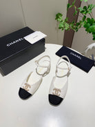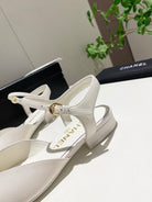 CC 25P Pearl Buckle Mary Jane Sandals Black White Sheepskin Frabic 466989