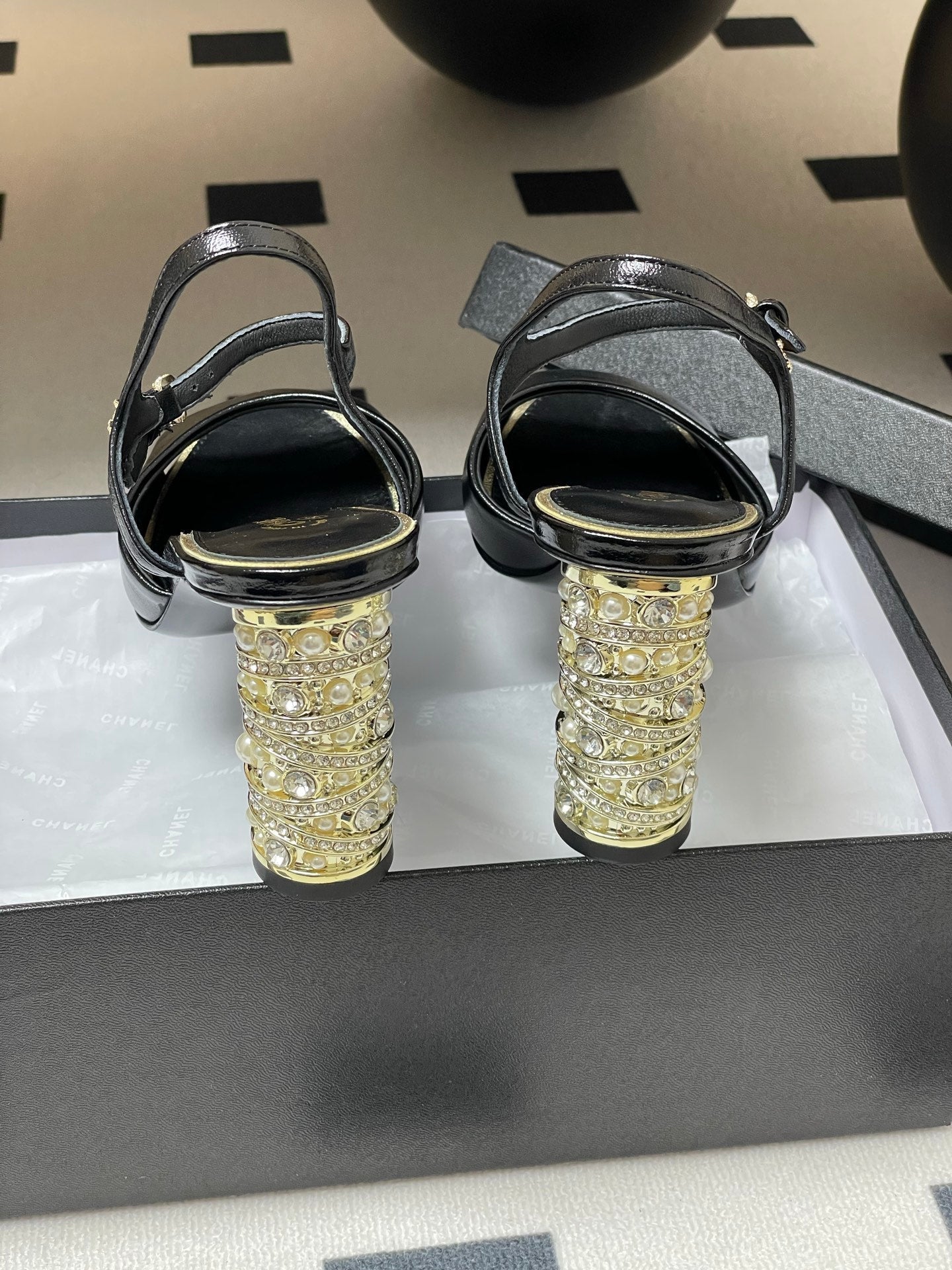 CC 25p Slingback Heel 8cm Black Calfskin