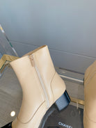 CC Ankle Boots Block Heel 60mm Beige Black Cowhide 464568