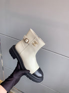 CC Cap Toe Ankle Boots Black White Cowhide 464572