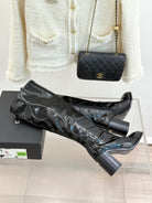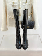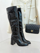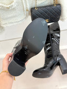 CC Classic Long Boots Block Heel 90mm Black Patent Leather 465395