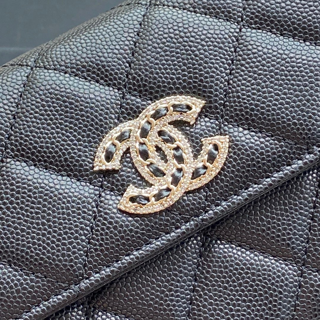 CC Classic Long Wallet 19cm Black Grained Calfskin