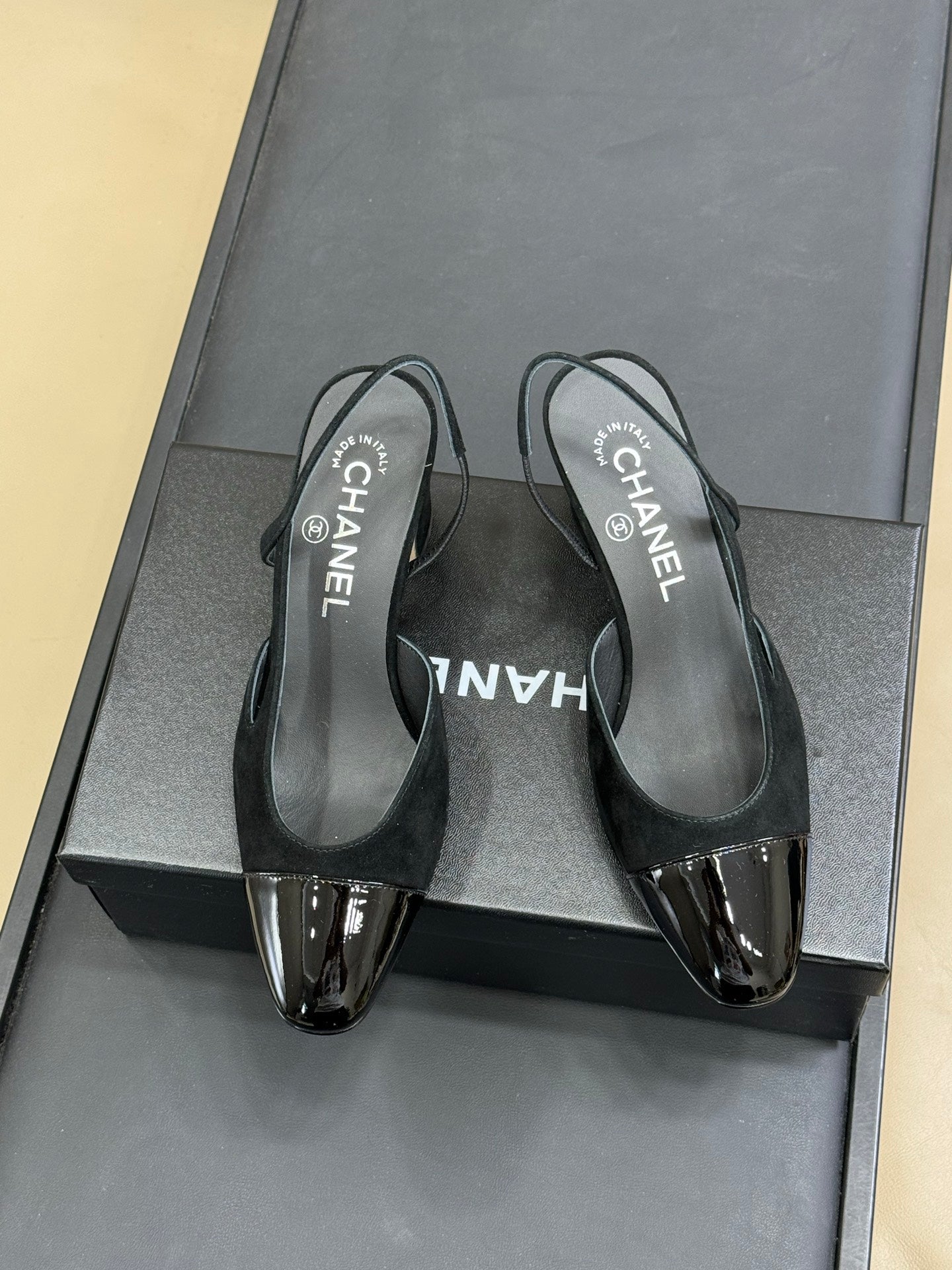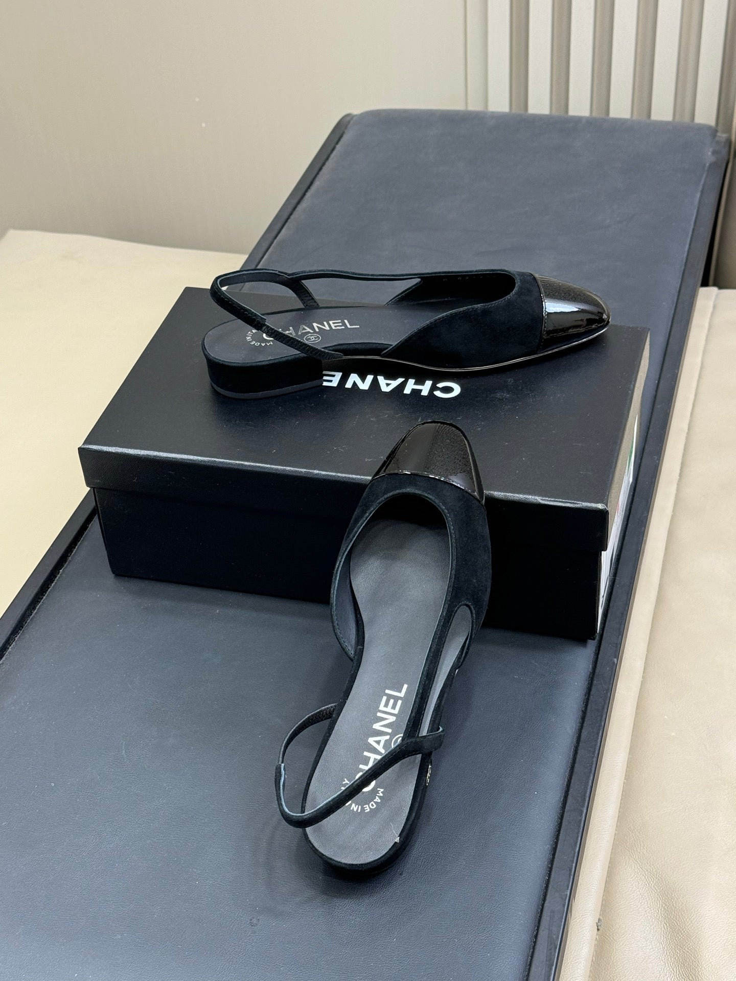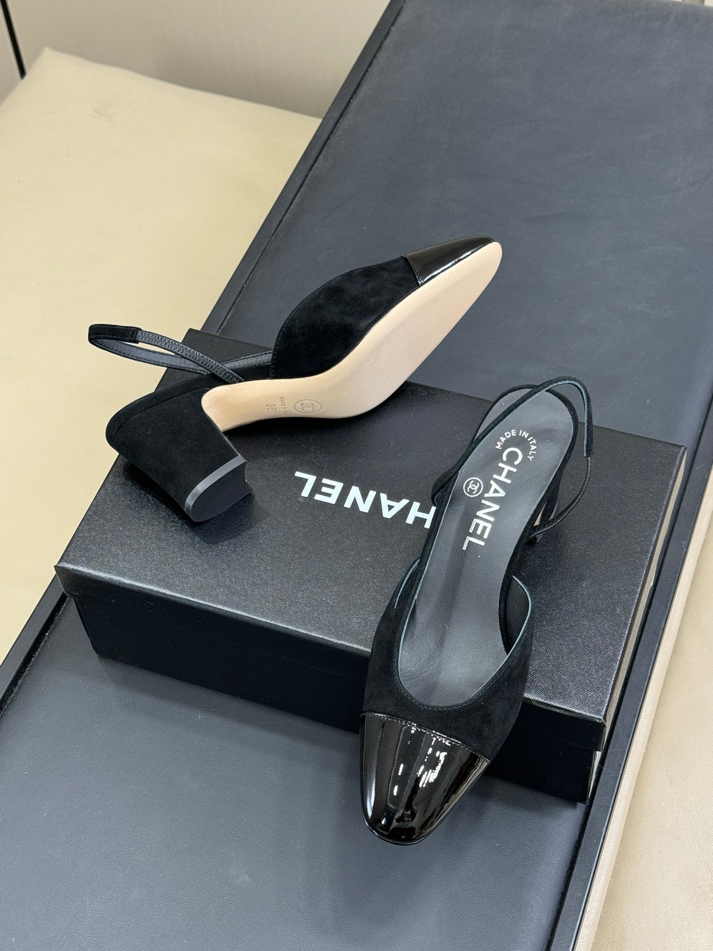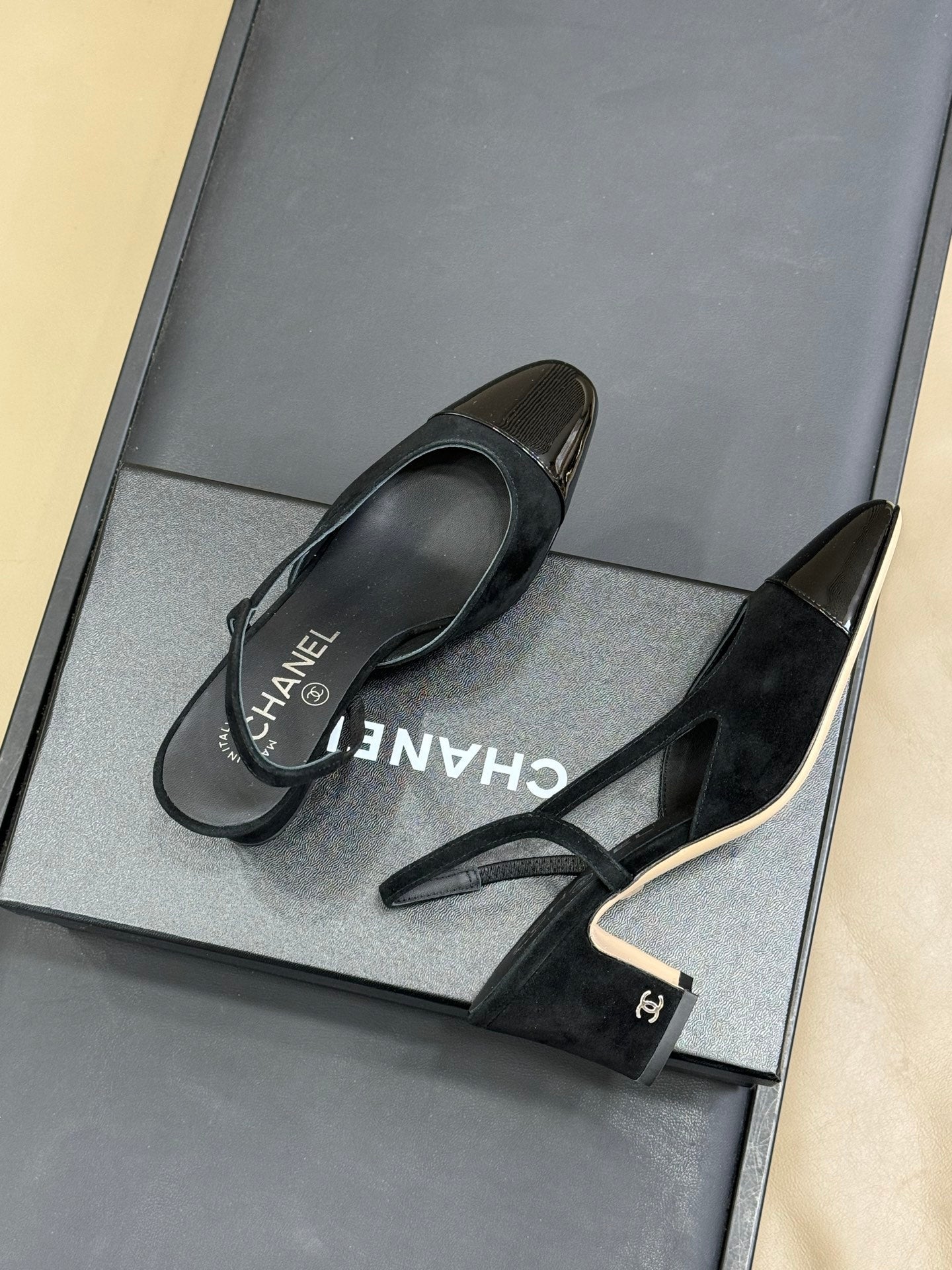 CC Classic Slingback Black Suede Mix Black Patent Calfskin 282285