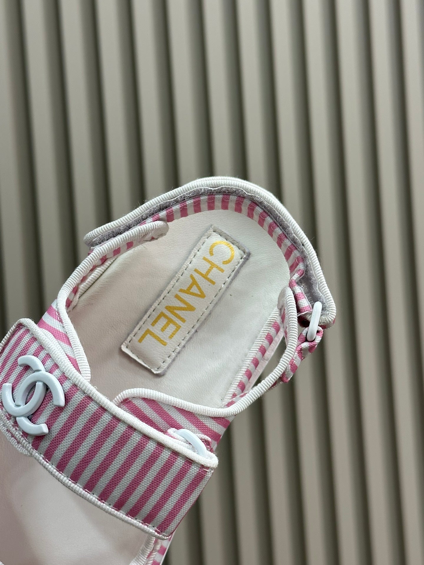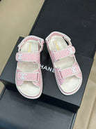 cc dad sandal striped pink white fabric calfksin