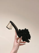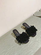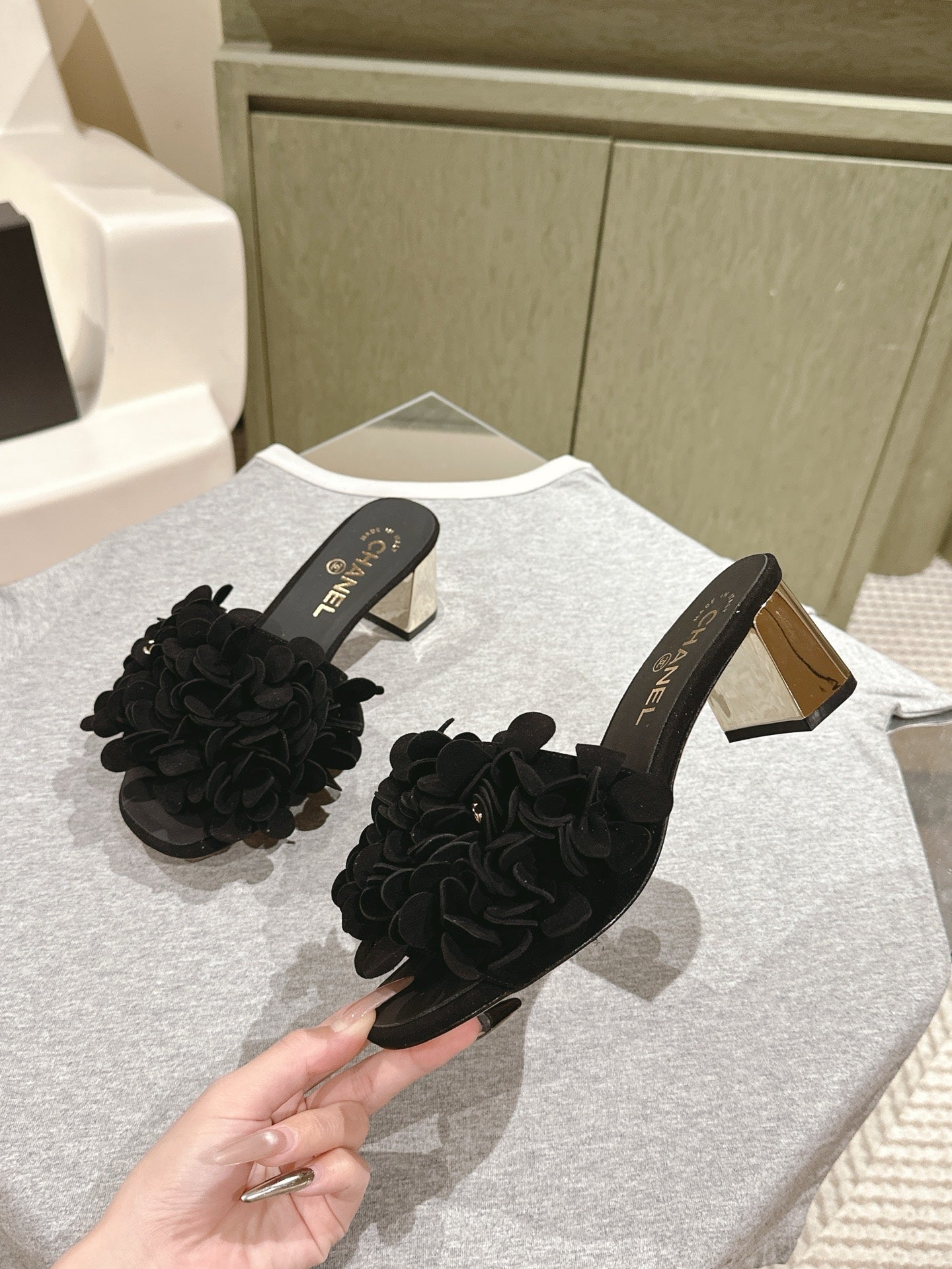 CC Floral Slide Sandals 55mm Black Suede Cowhide 454284