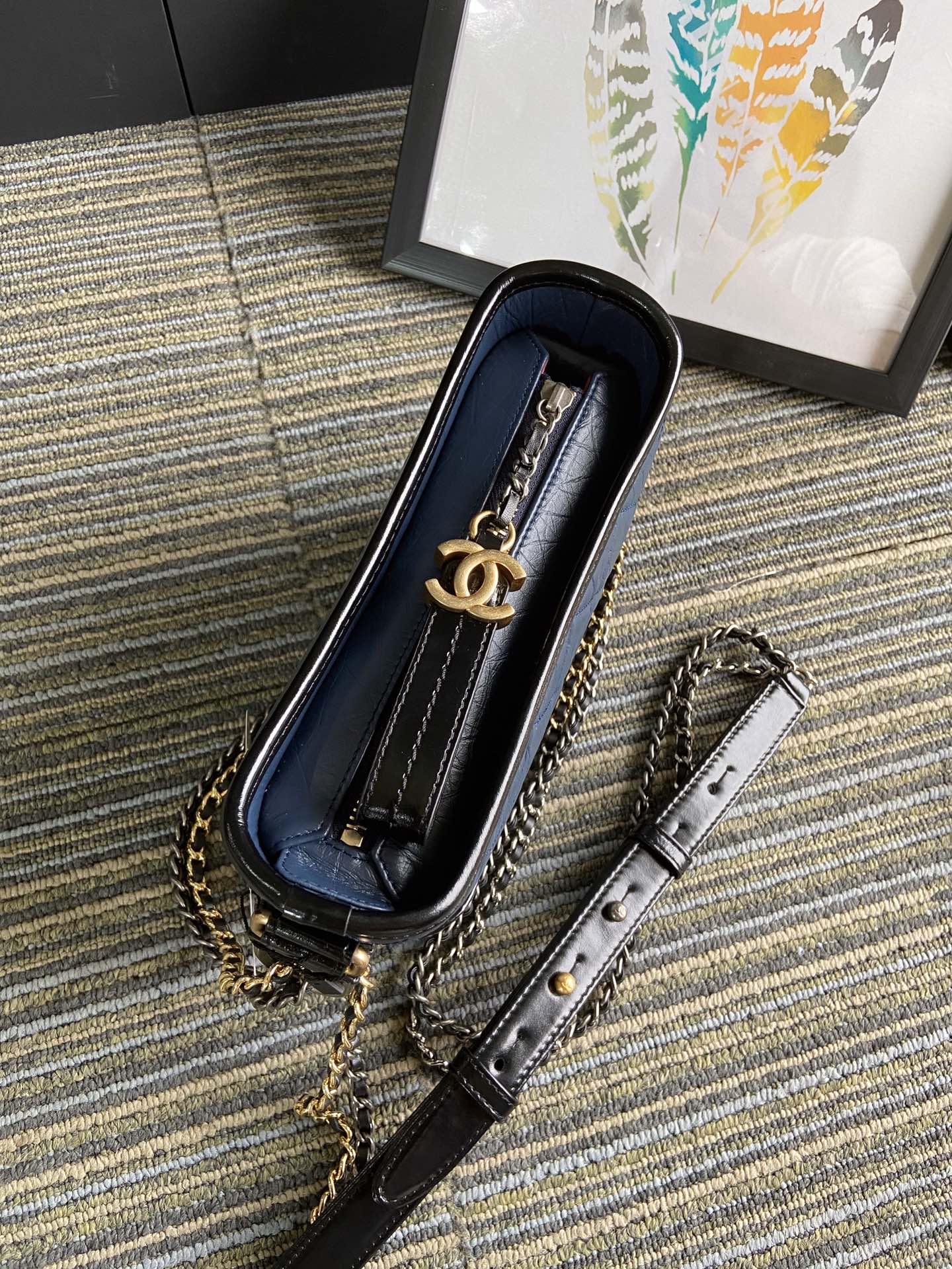 CC MEDIUM 20 HOBO BAG IN AEGEAN BLUE MIX BLACK CALFSKIN WITH STRAP