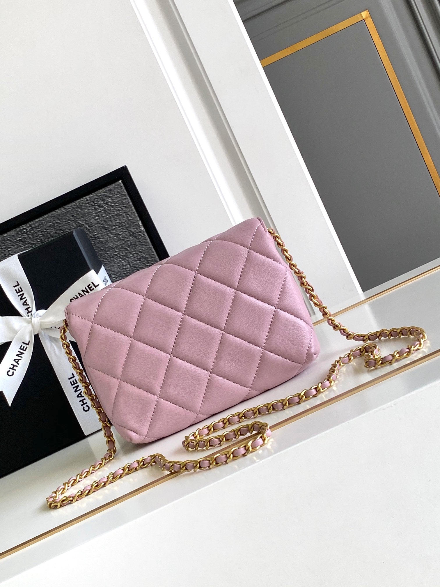 CC MINI 20 FLAP BAG IN LIGHT PINK LAMBSKIN GOLD HARDWARE