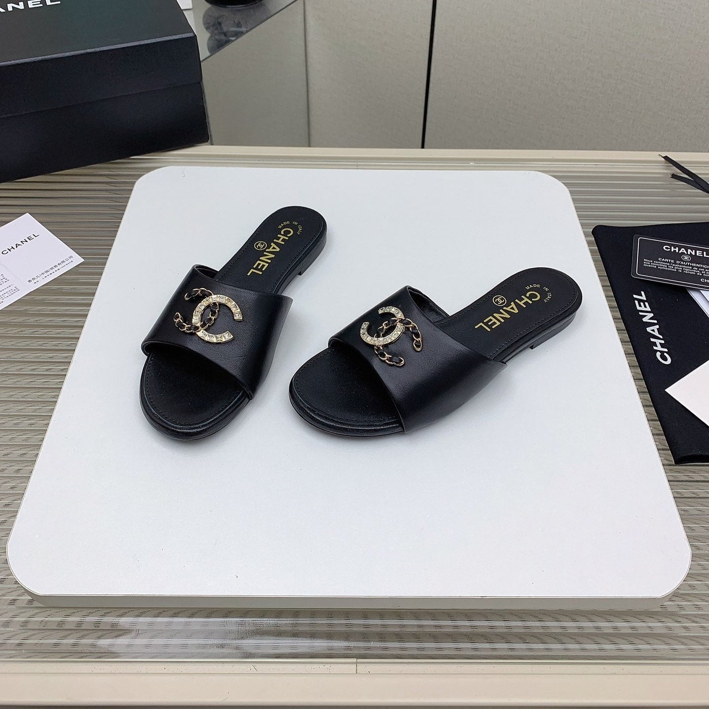 CC Slippers In Black Lambskin 148991