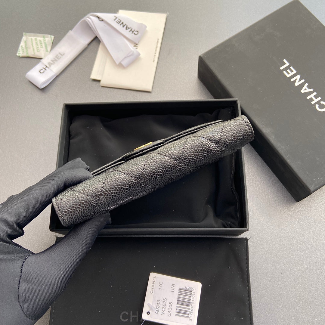 cc wallet 15cm black caviar gold hardware
