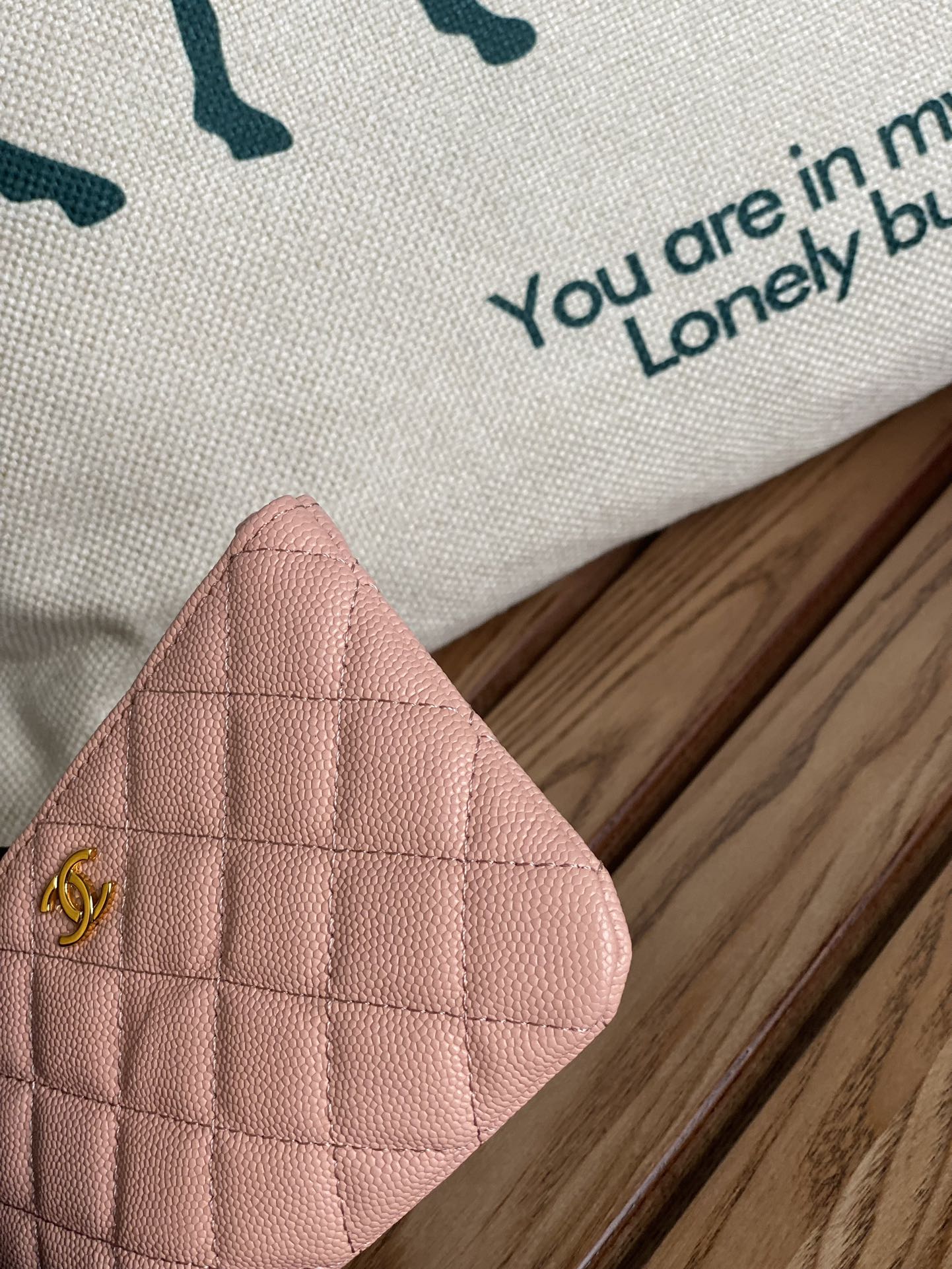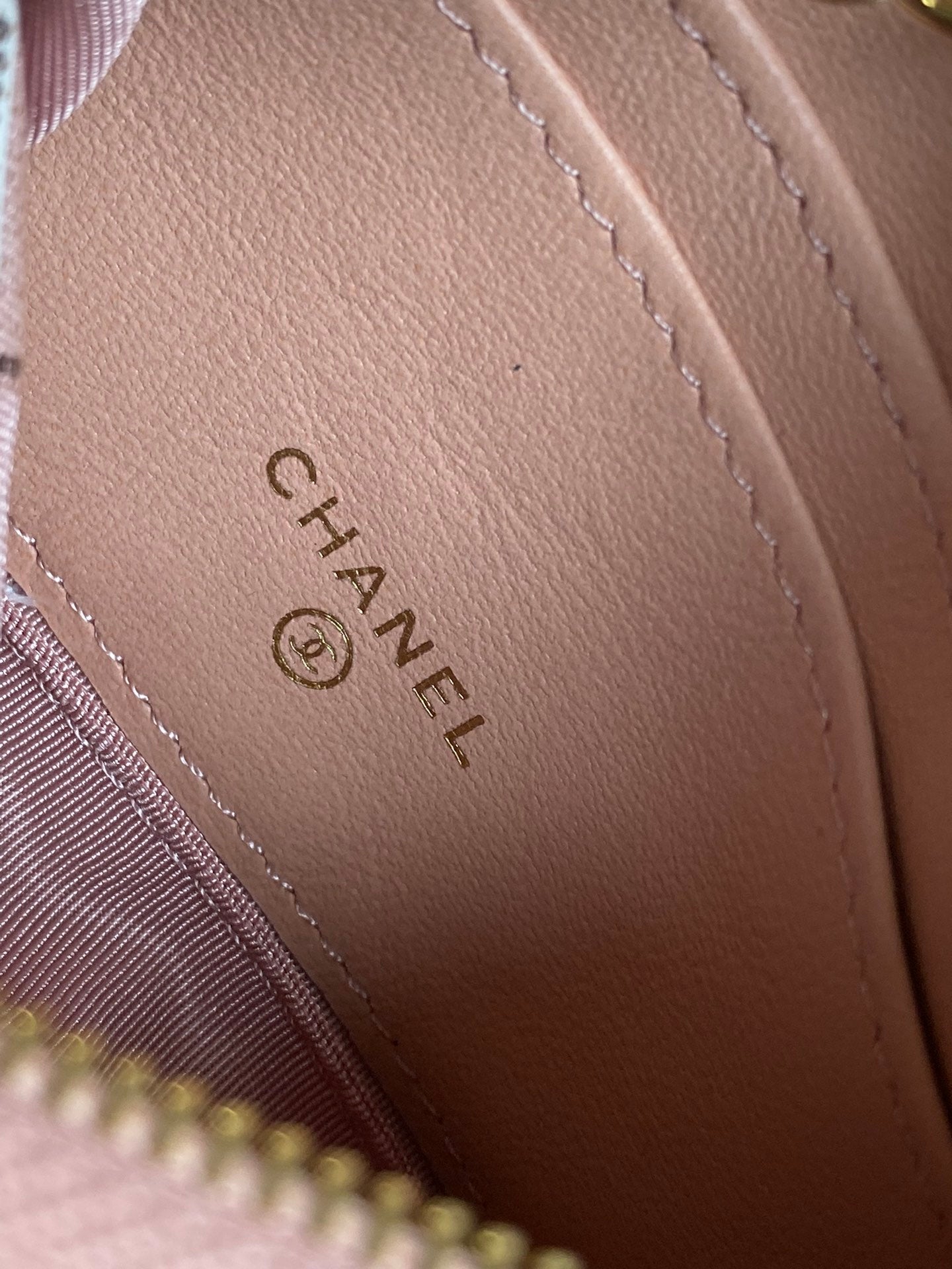 cc zipped wallet 14cm light pink caviar gold hardware