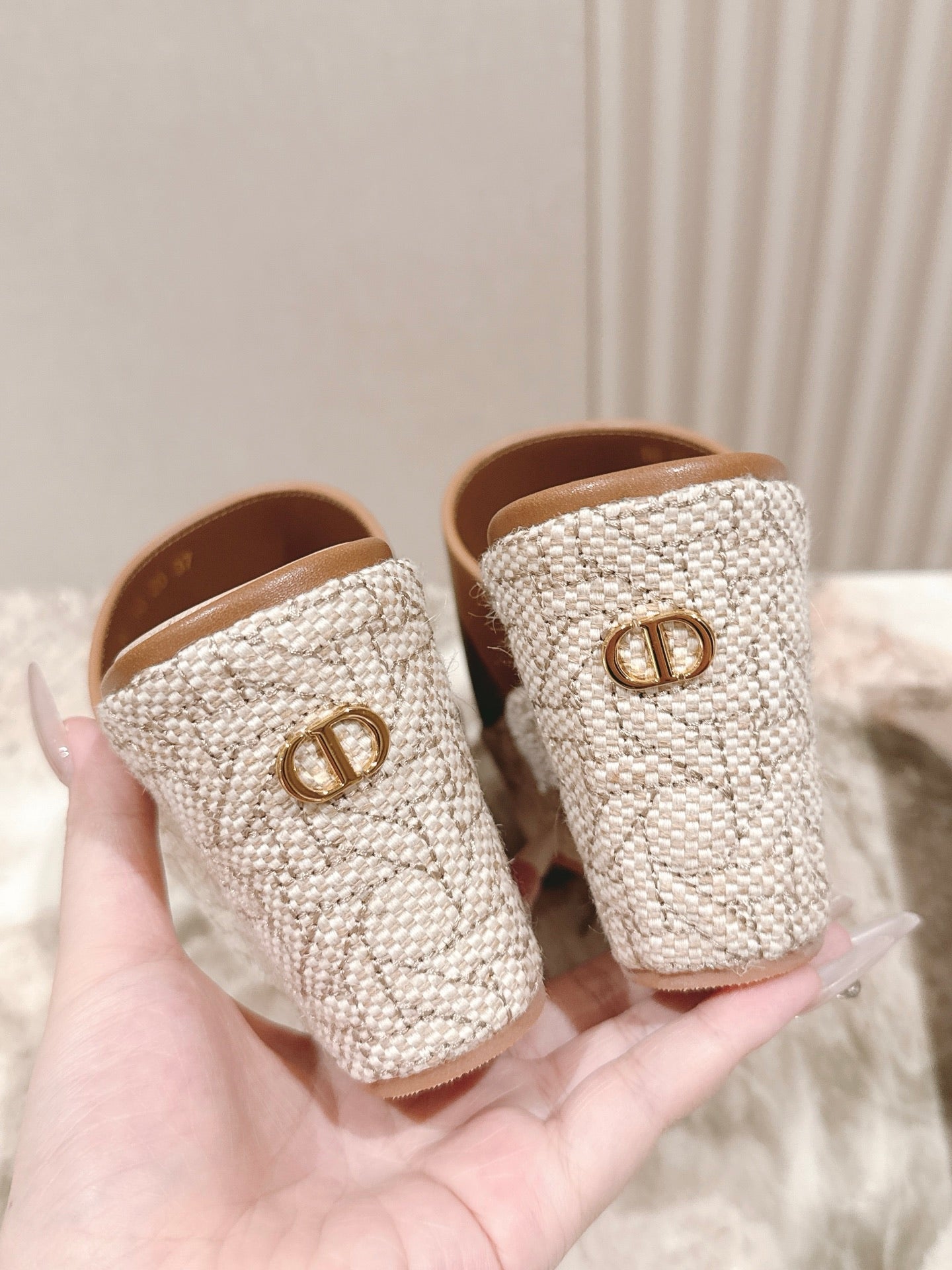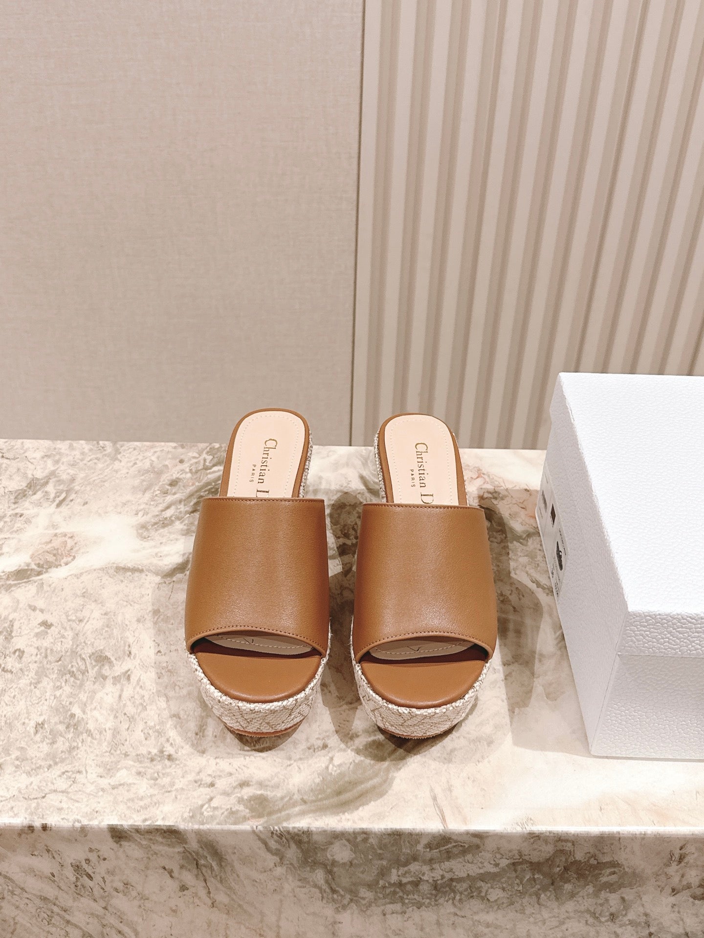 CD Attitude Wedge Slide 85mm Camel Calfskin 483086