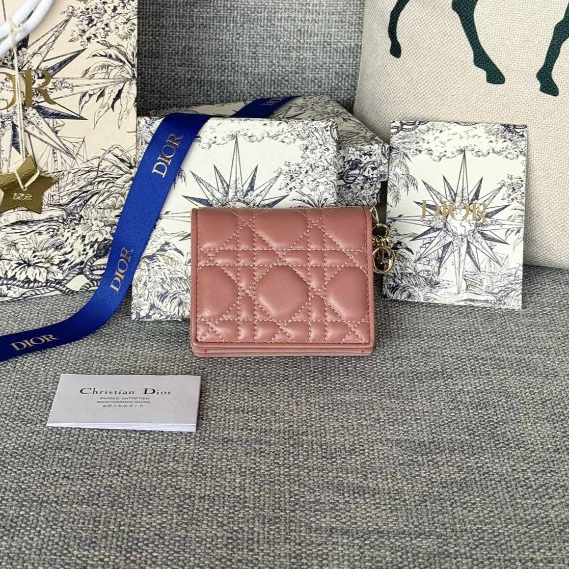 CD Caro 11cm Compact Wallet Dark Pink Calfskin