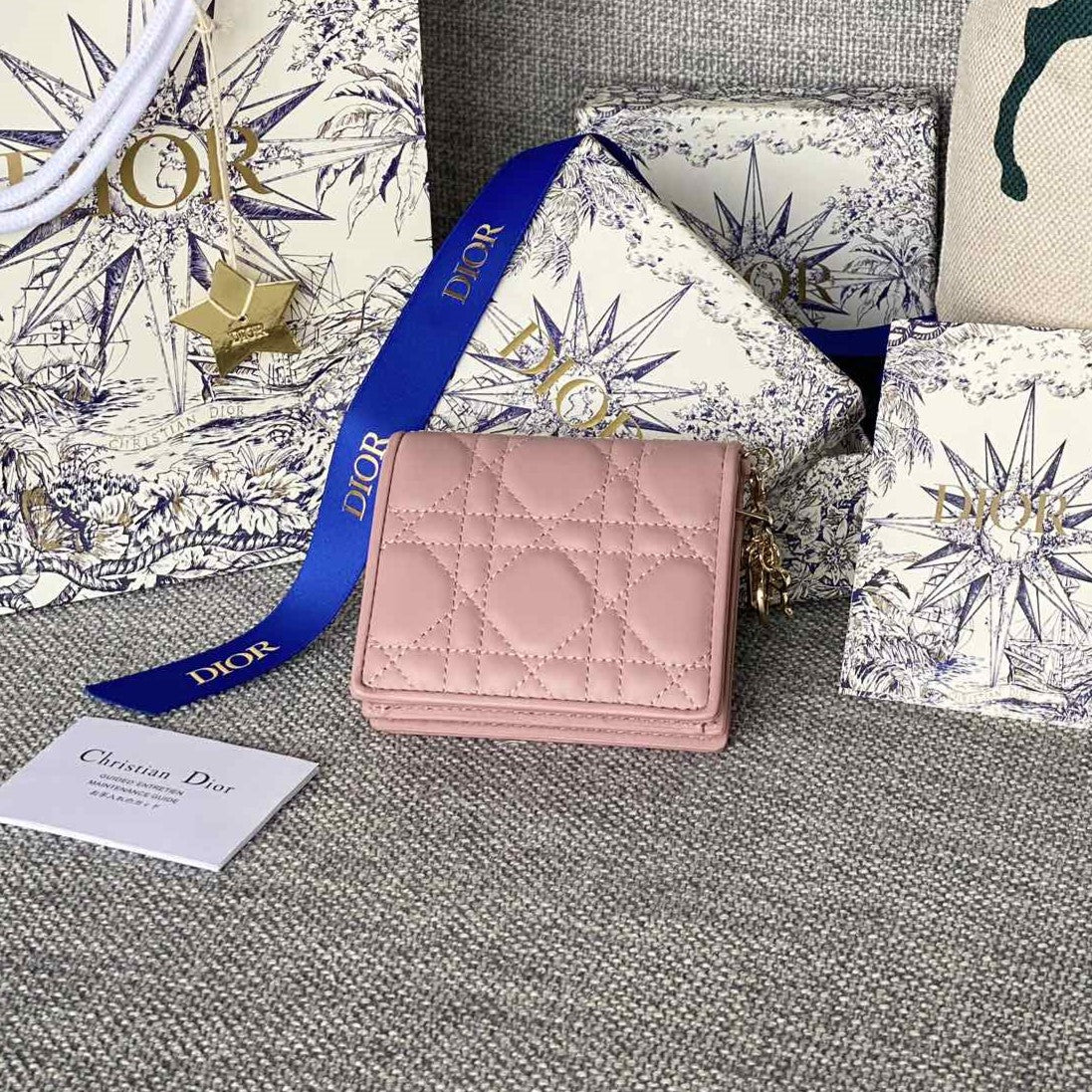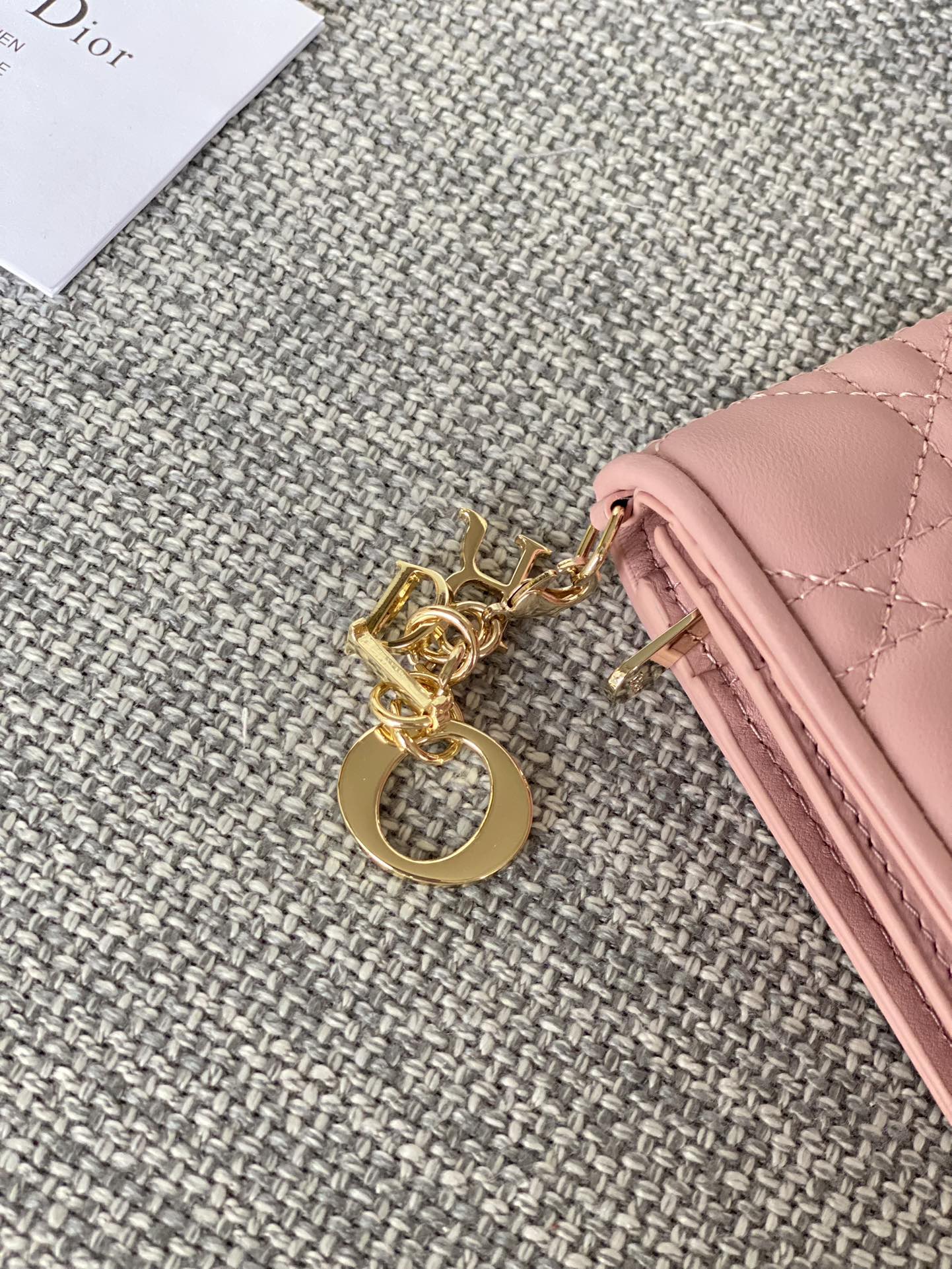 CD Caro 11cm Compact Wallet Pink Calfskin
