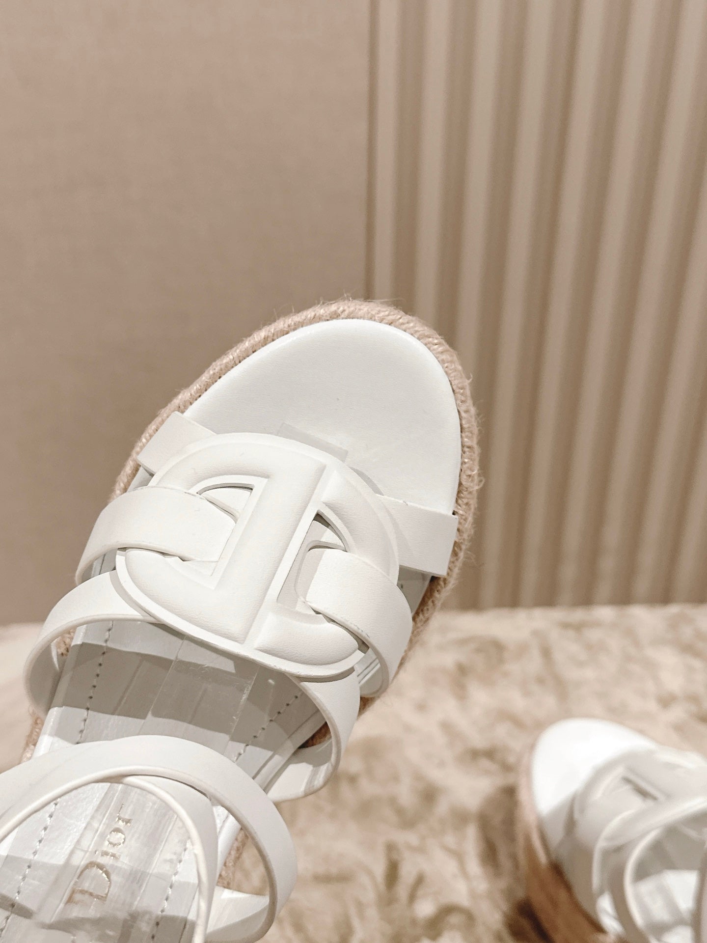 CD D-Club Wedge Sandal 85mm White Calfskin 483080