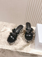 CD L'Amazone Wedge Slide 85mm Black Calfskin and Raffia 483084