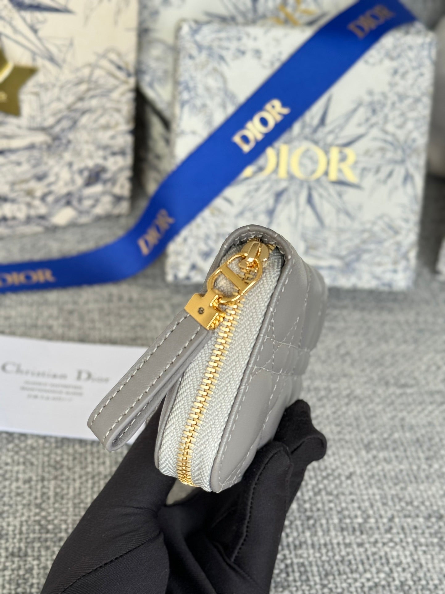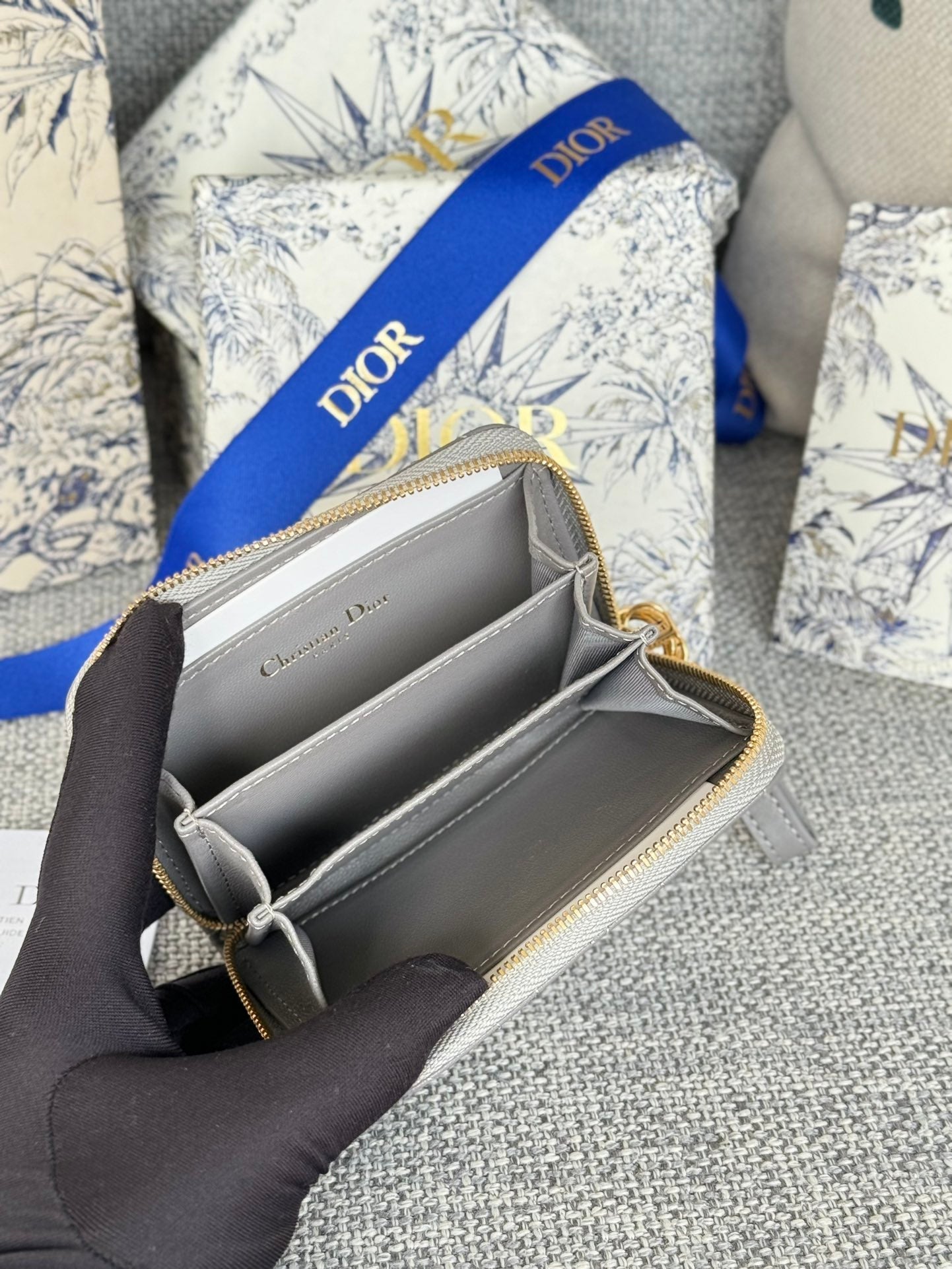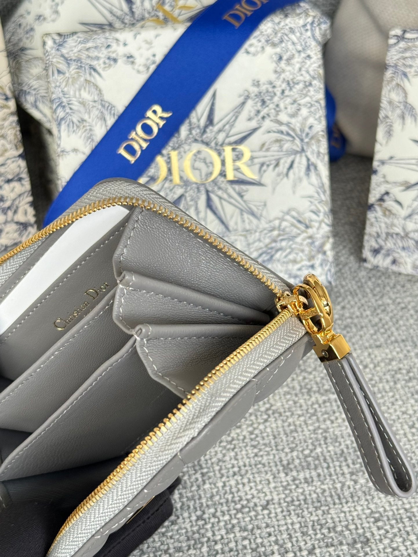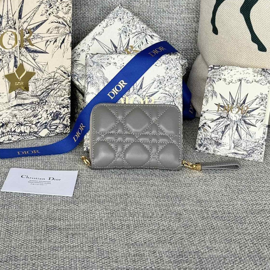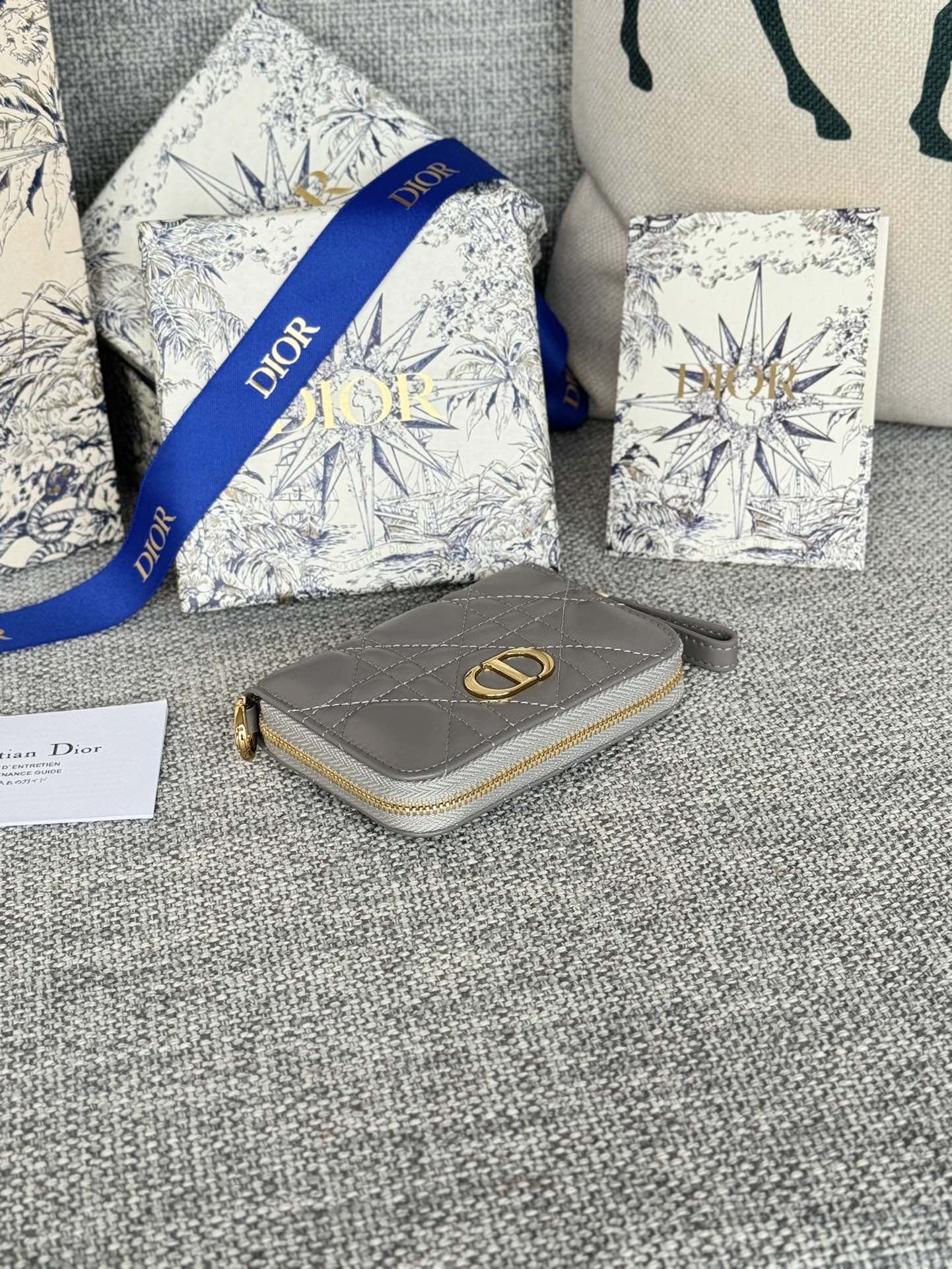 CD Logo Caro 11cm Compact Wallet Grey Calfskin
