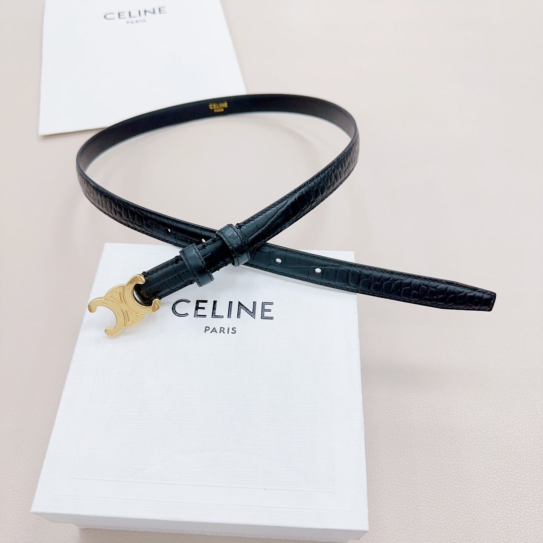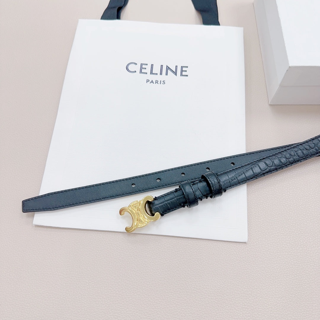 CEL Gold Buckle Belt 18mm Black Calfskin 176702