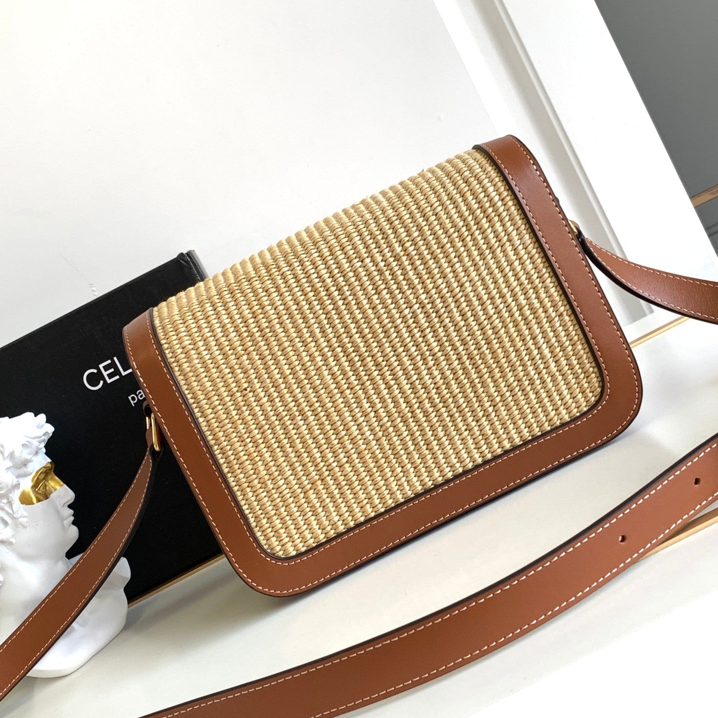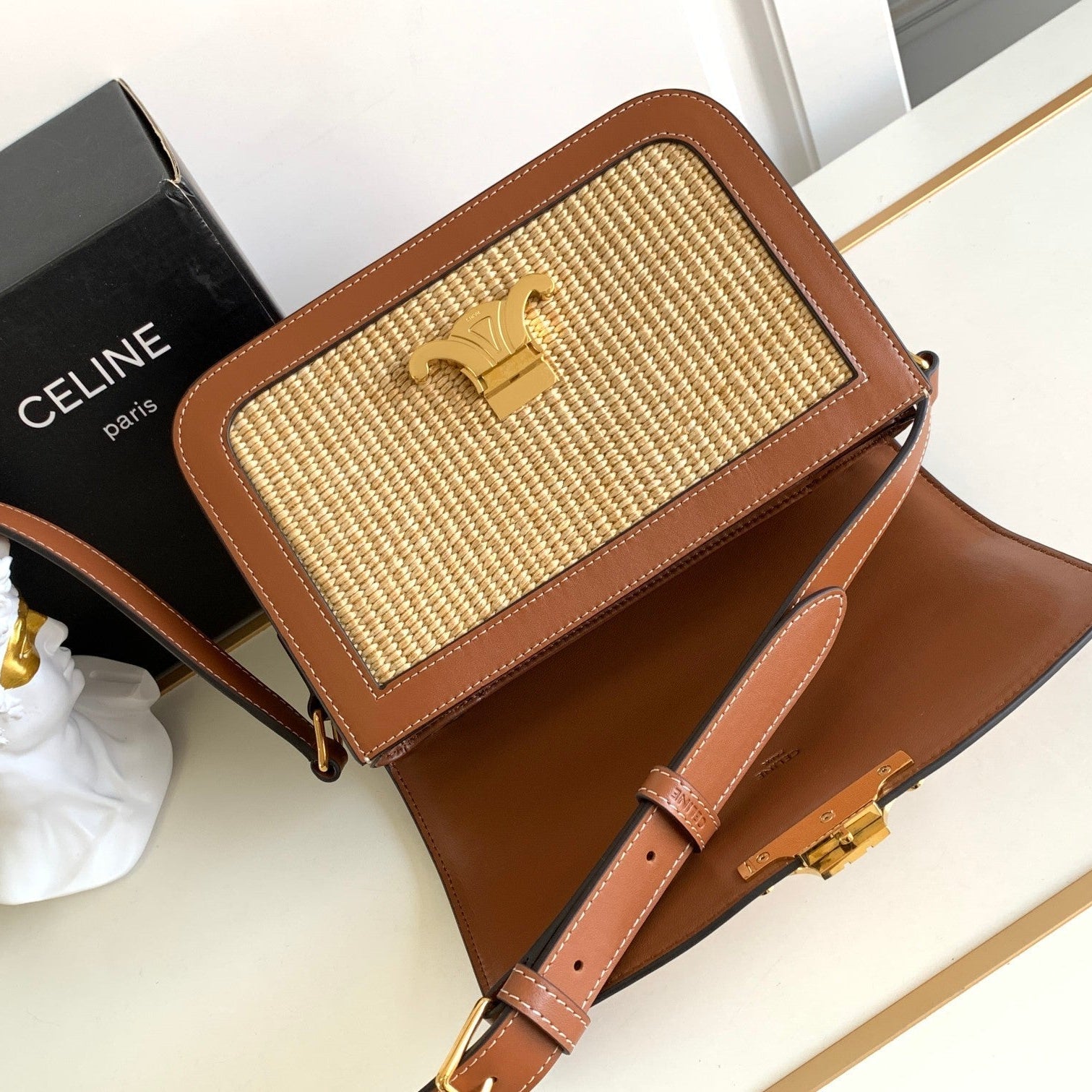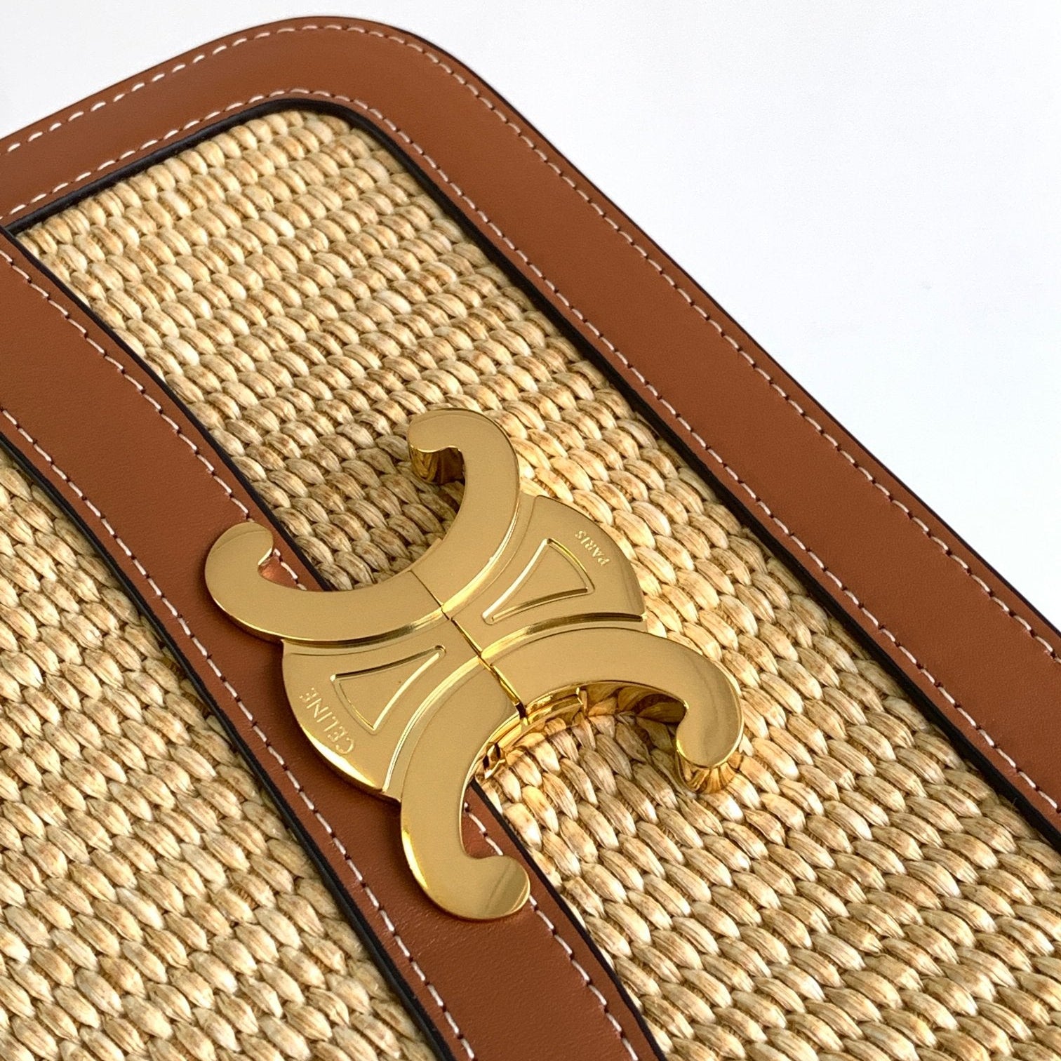 Celine Classic Panier 47cm Braieded Triomphe Beige Raffia Brown Calfskin