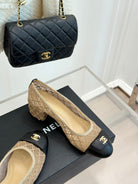 Chanel 25 Ballet Flat 50mm Beige Black Woven Lambskin 473050