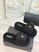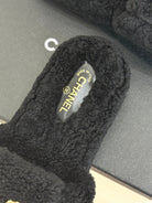 Chanel 25 Buckle Flip-up Thick-soled Slippers Black Wool 465386