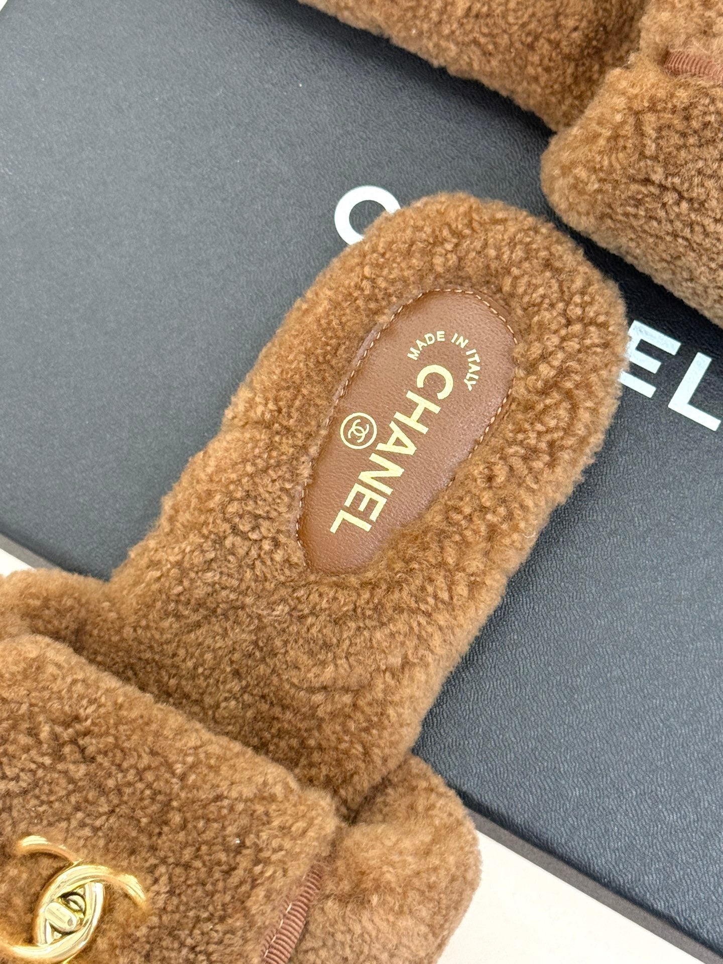Chanel 25 Buckle Flip-up Thick-soled Slippers Brown Wool 465381
