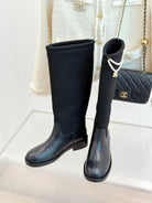 Chanel 25 Four-Leaf Clover Pearls Double C Long Boots Black Woven Sheepskin 465407