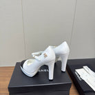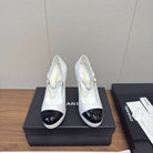 Chanel 25 High Heel Pump White Black Sheepskin 465595