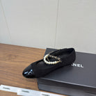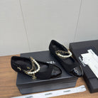 Chanel 25 Mary Jane Ankle Chain Ballet Flat black Suede Cowhide 465597