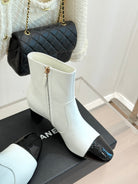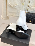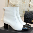 Chanel Double C Colorblock Heel Boot White Sheepskin 465415