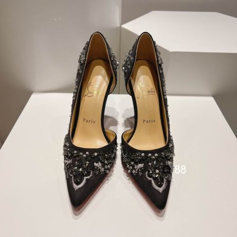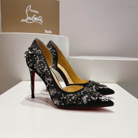 CL Brodiriza Embellished D'orsay Pumps 100mm Satin Black