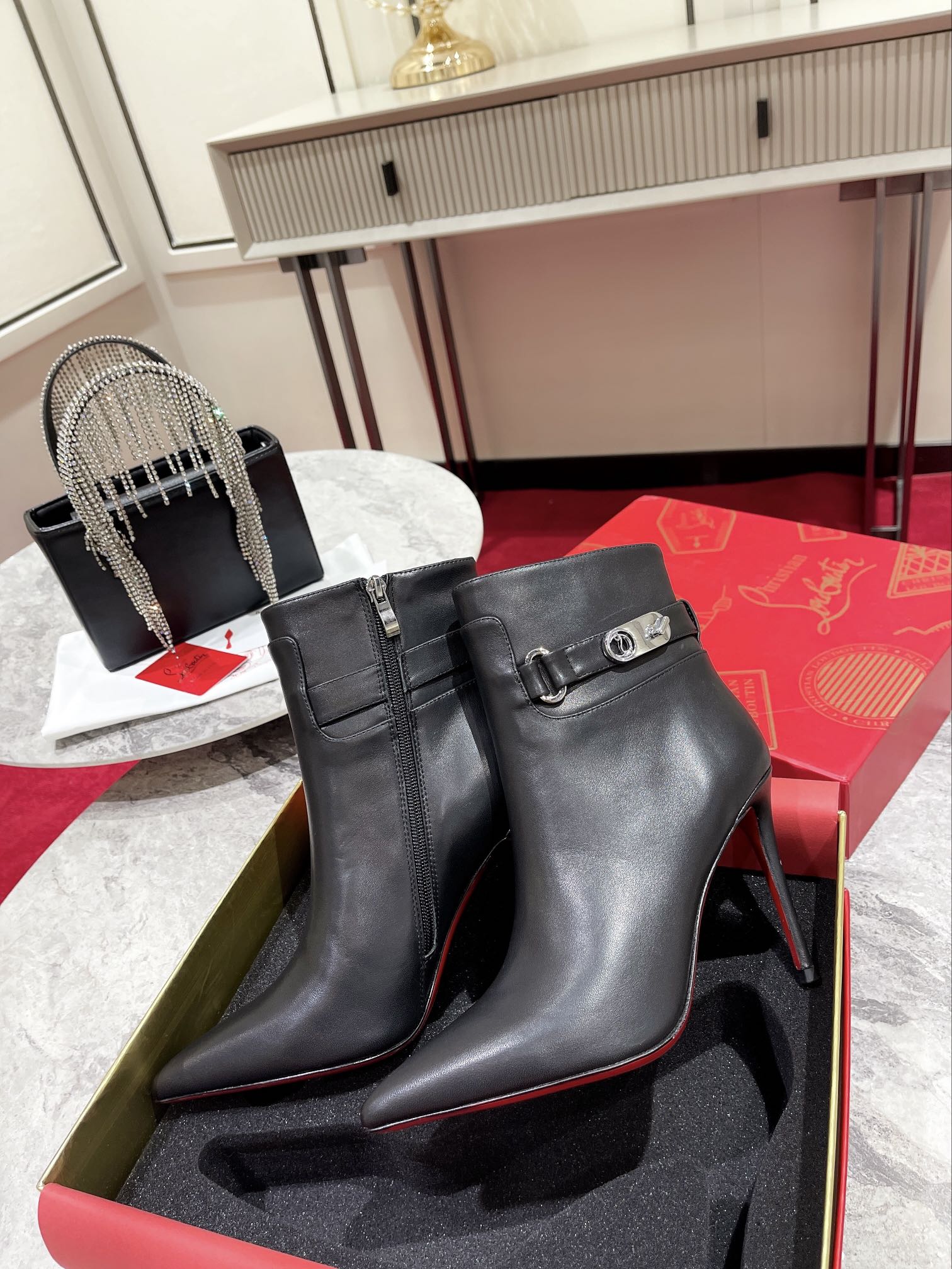 CL Lock So Kate Ankle Boots 100mm Calf Leather Black