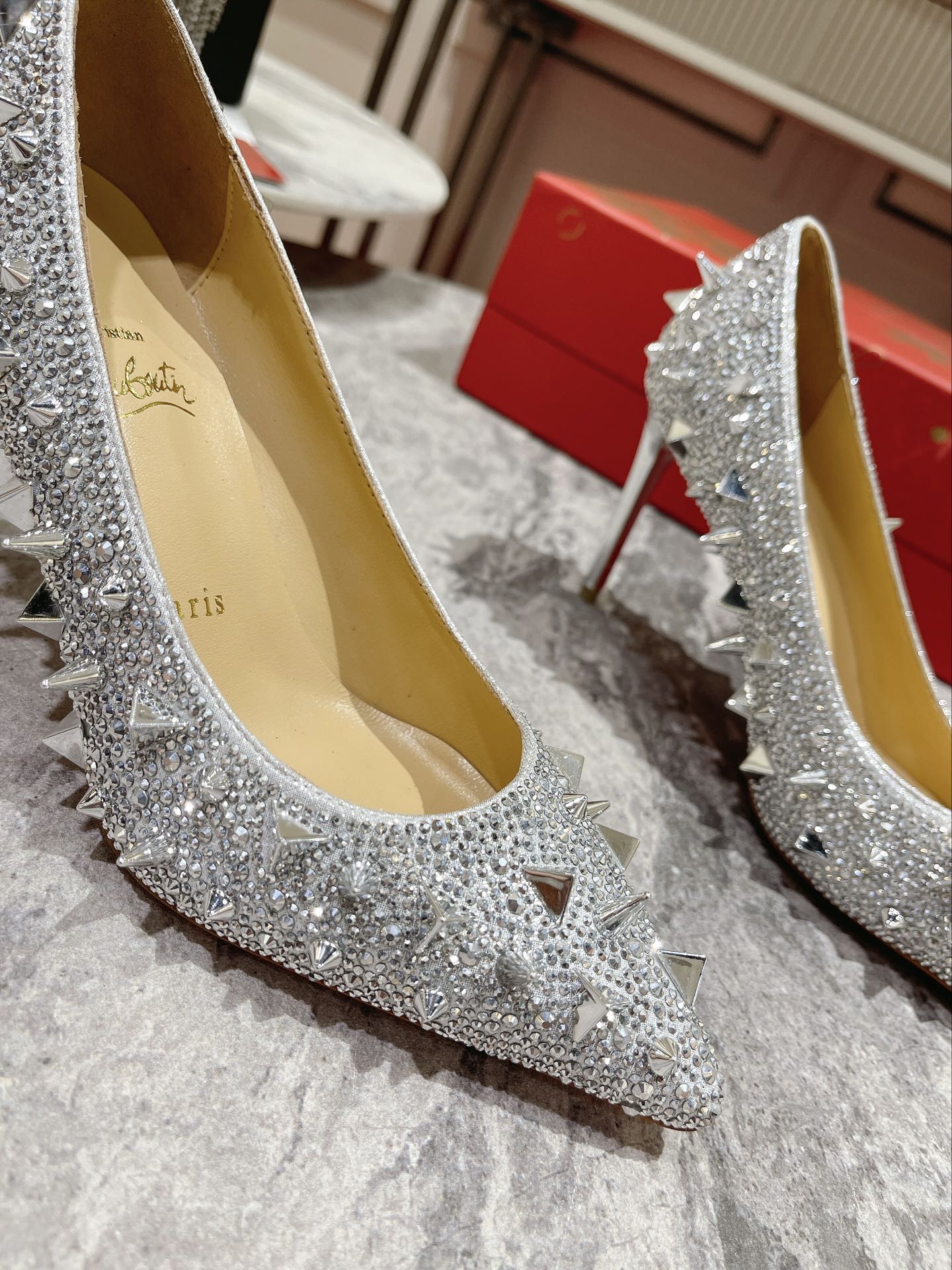 CL Pigalili Potpourri Strass Pumps Glitter Silver