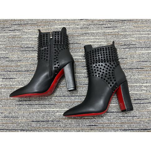 CL Praguoise Spikes Ankle Boots 100mm Calf Leather Black
