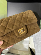 Classic Flap Bag 20cm Brown Suede Gold Hardware