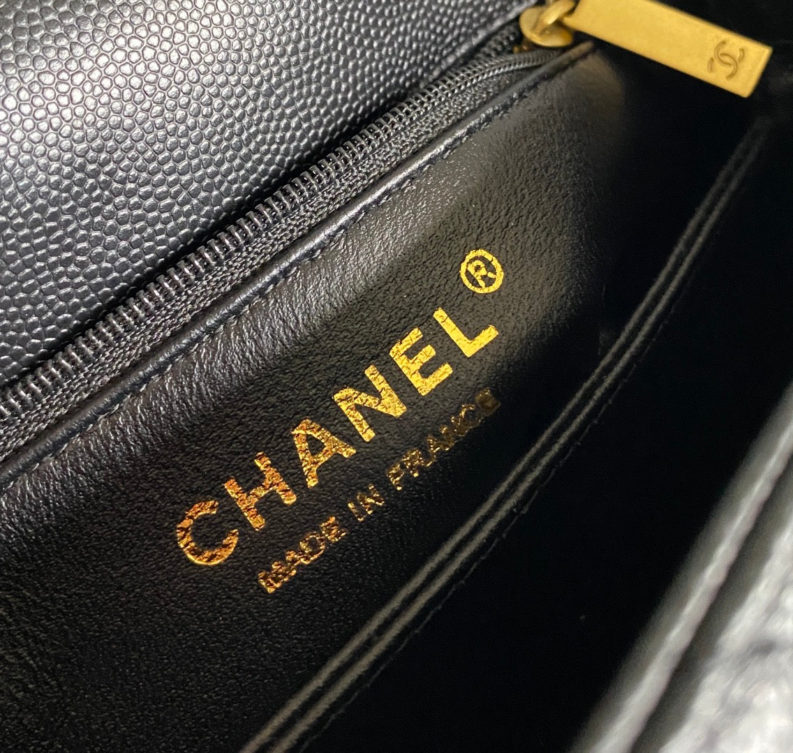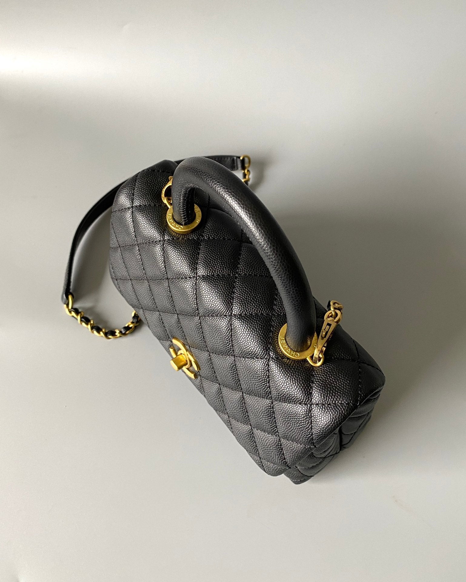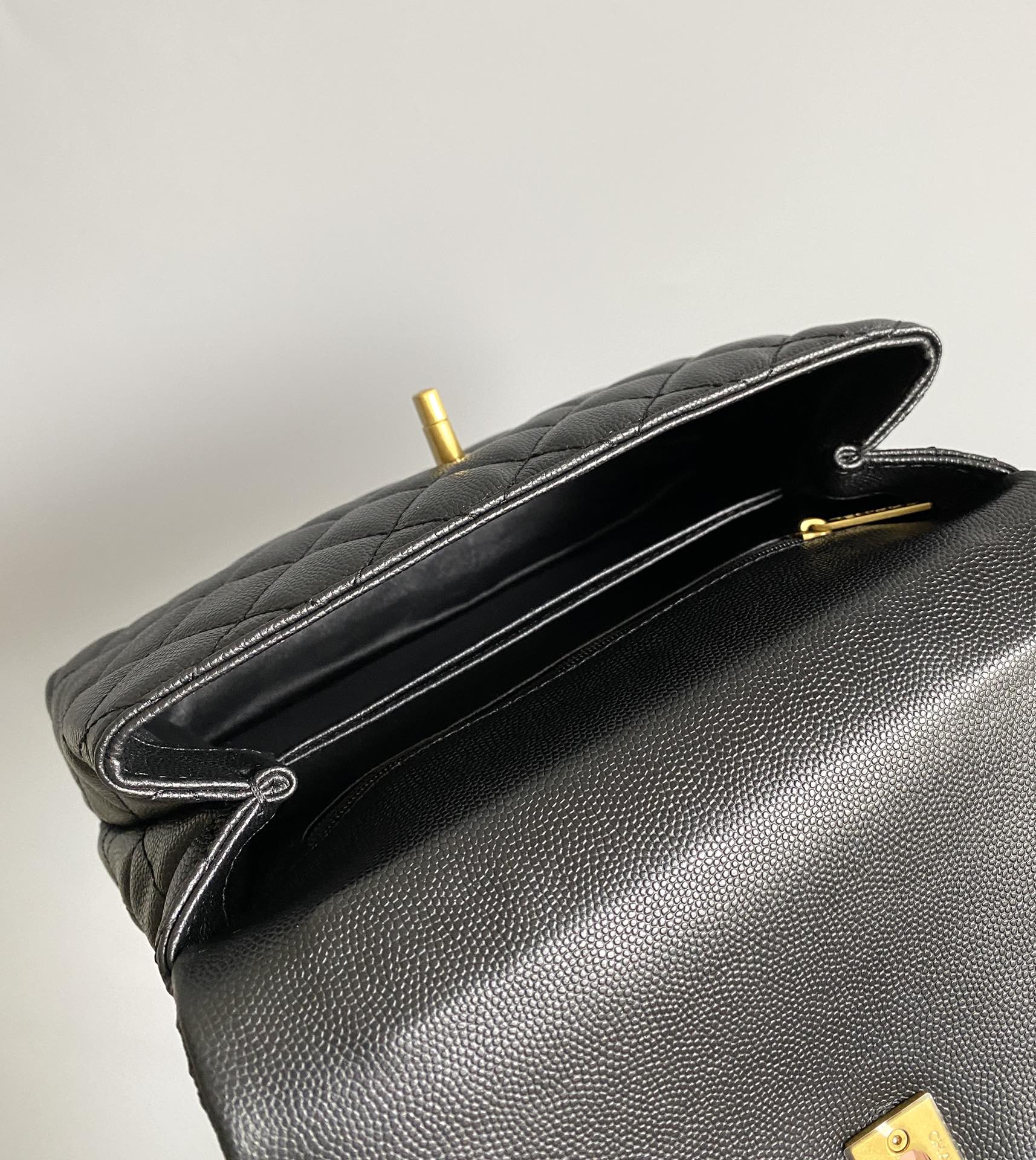 coco handle flap bag 23cm black quilted caviar gold hardware