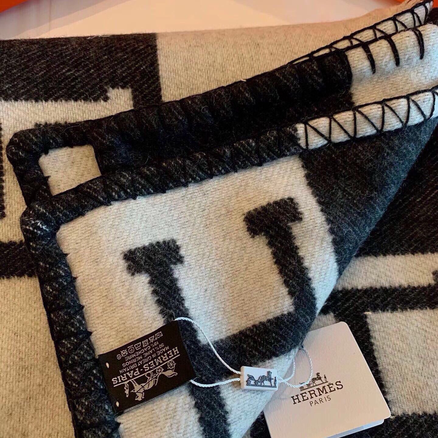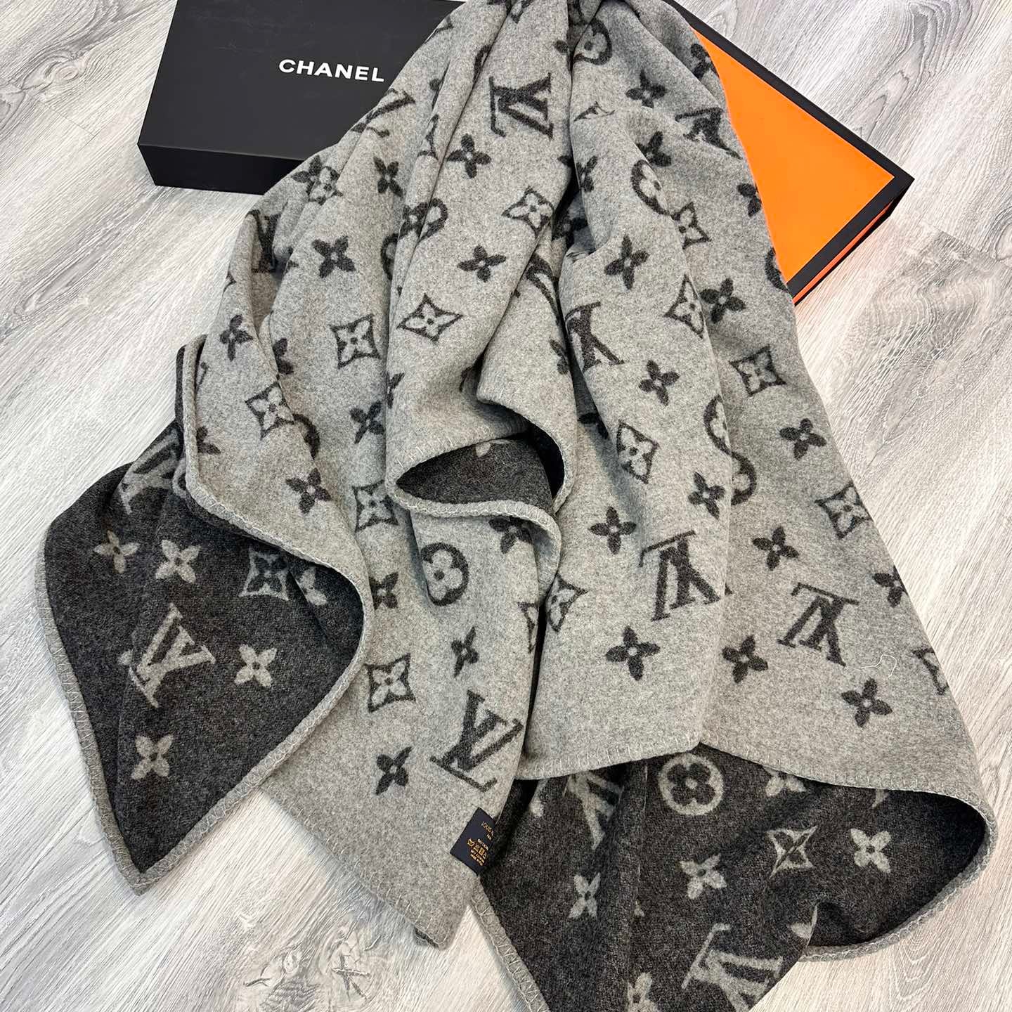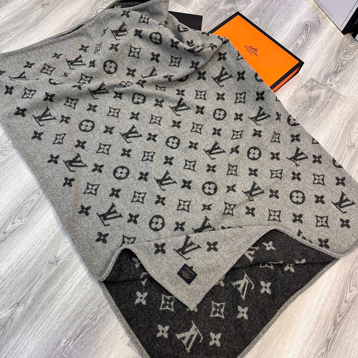 DOUBLE-FACE STOLE 200 CM IN BLACK AND GRAY CASHMERE 394774
