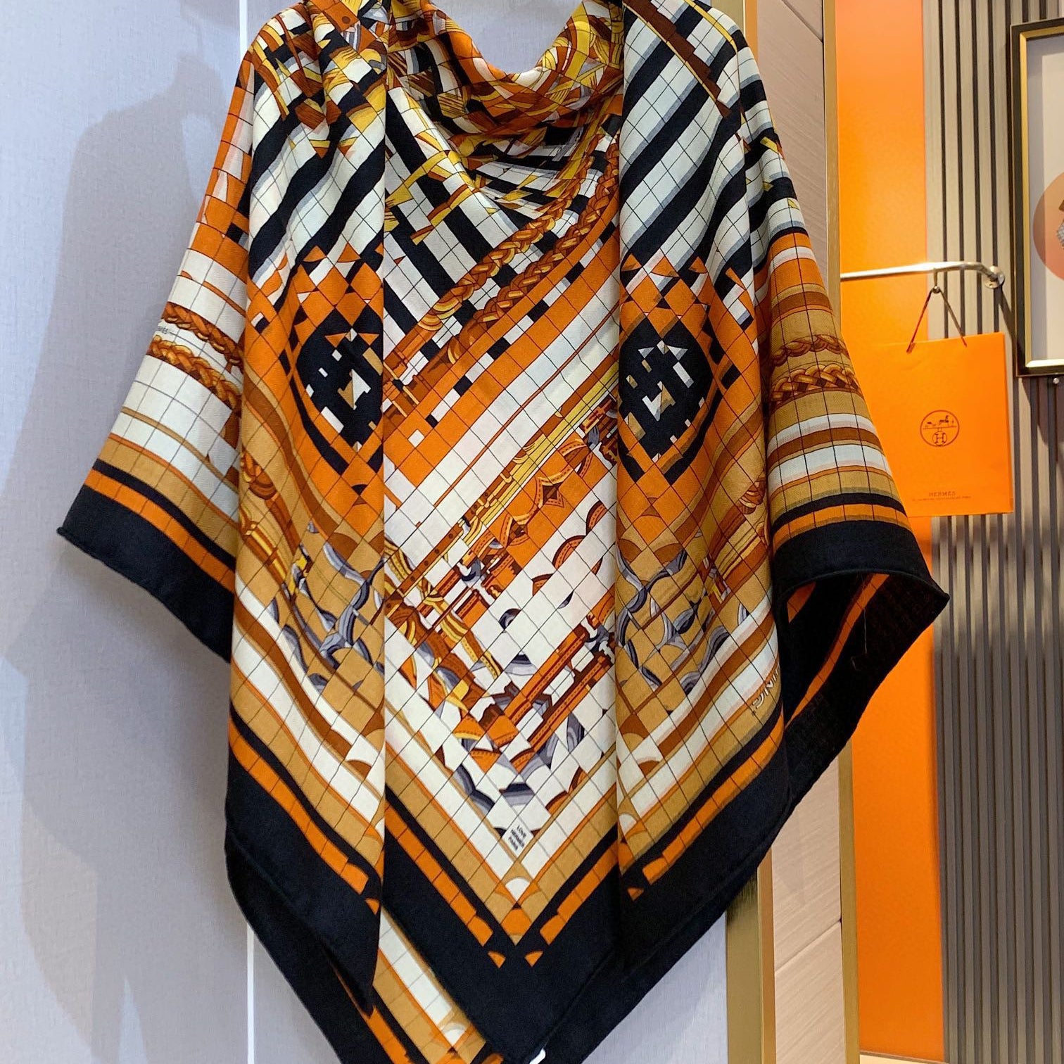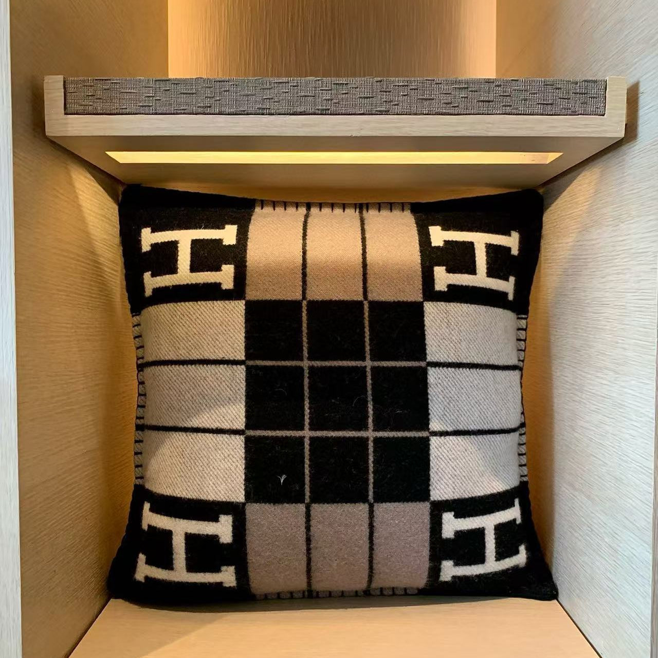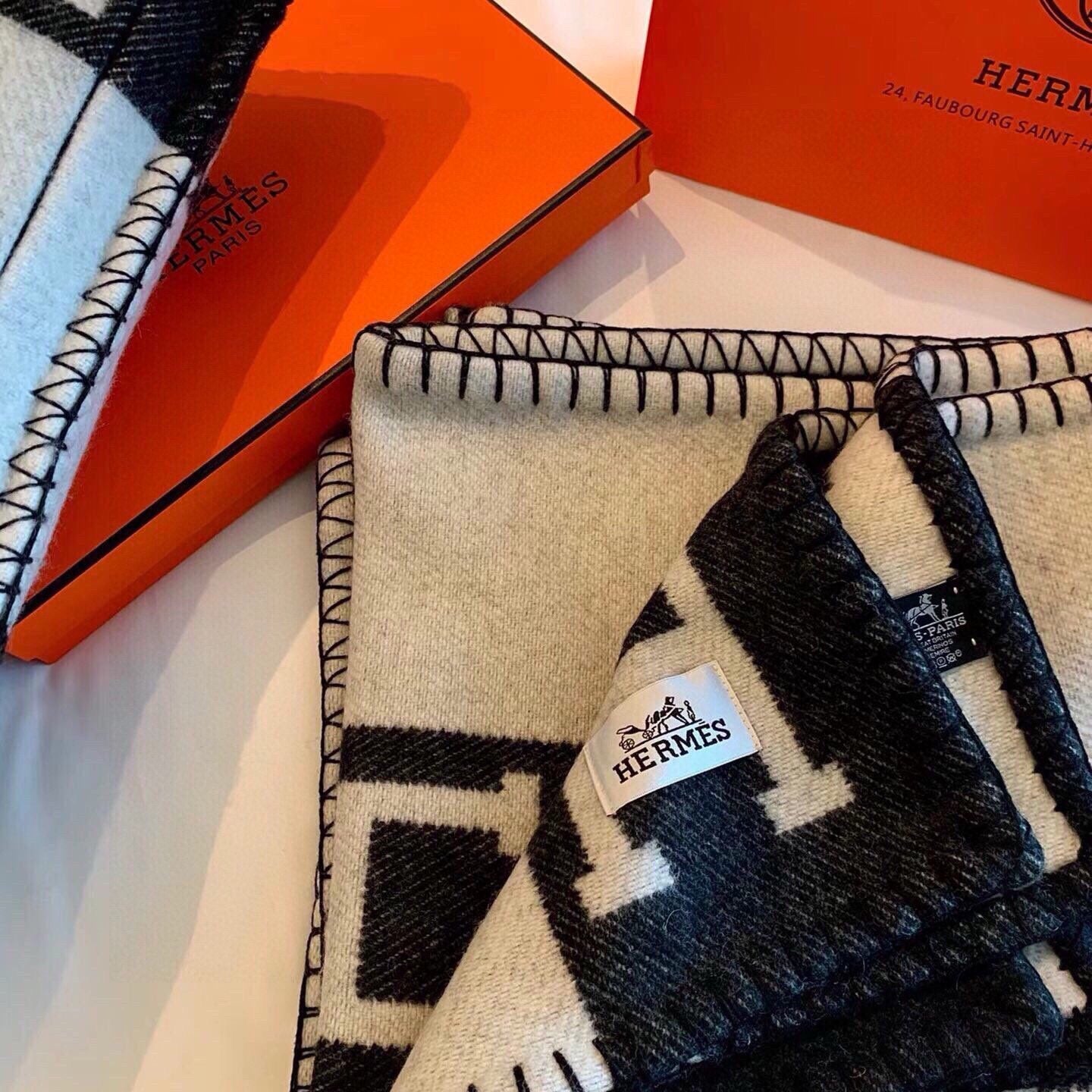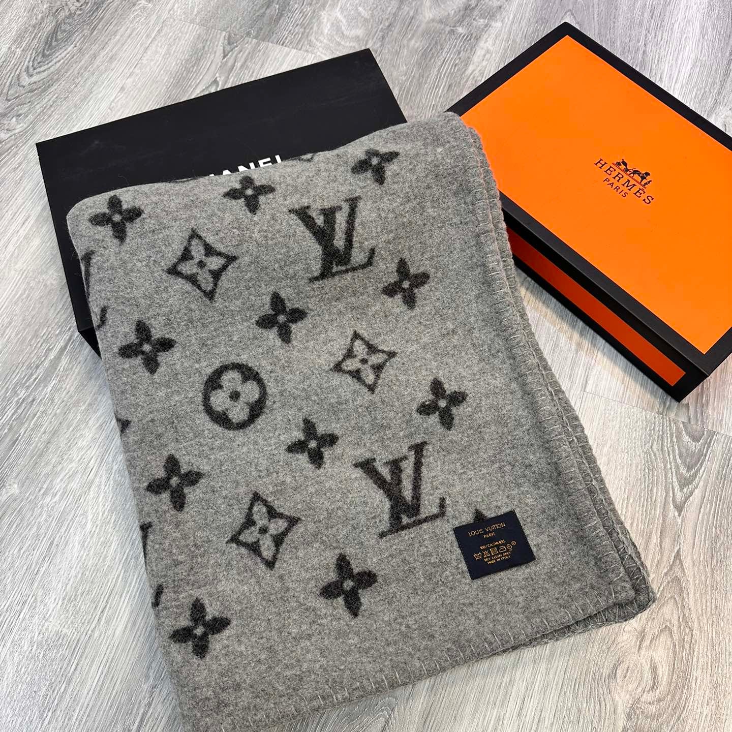 DOUBLE-FACE STOLE 200 CM IN BLACK AND GRAY CASHMERE 394774
