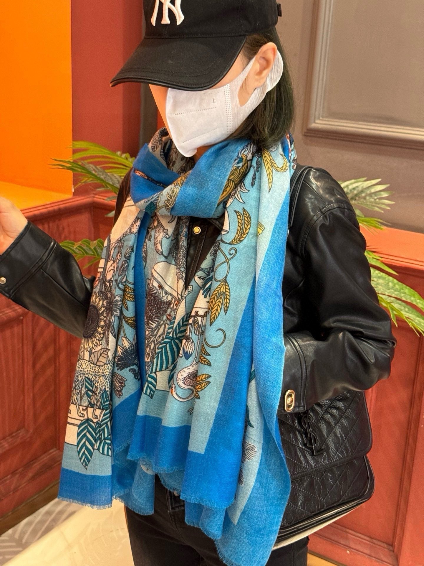 EXOTIC PARADISE CASHMERE SCARF 200 CM COBALT BLUE MIX COLORFUL CASHMERE