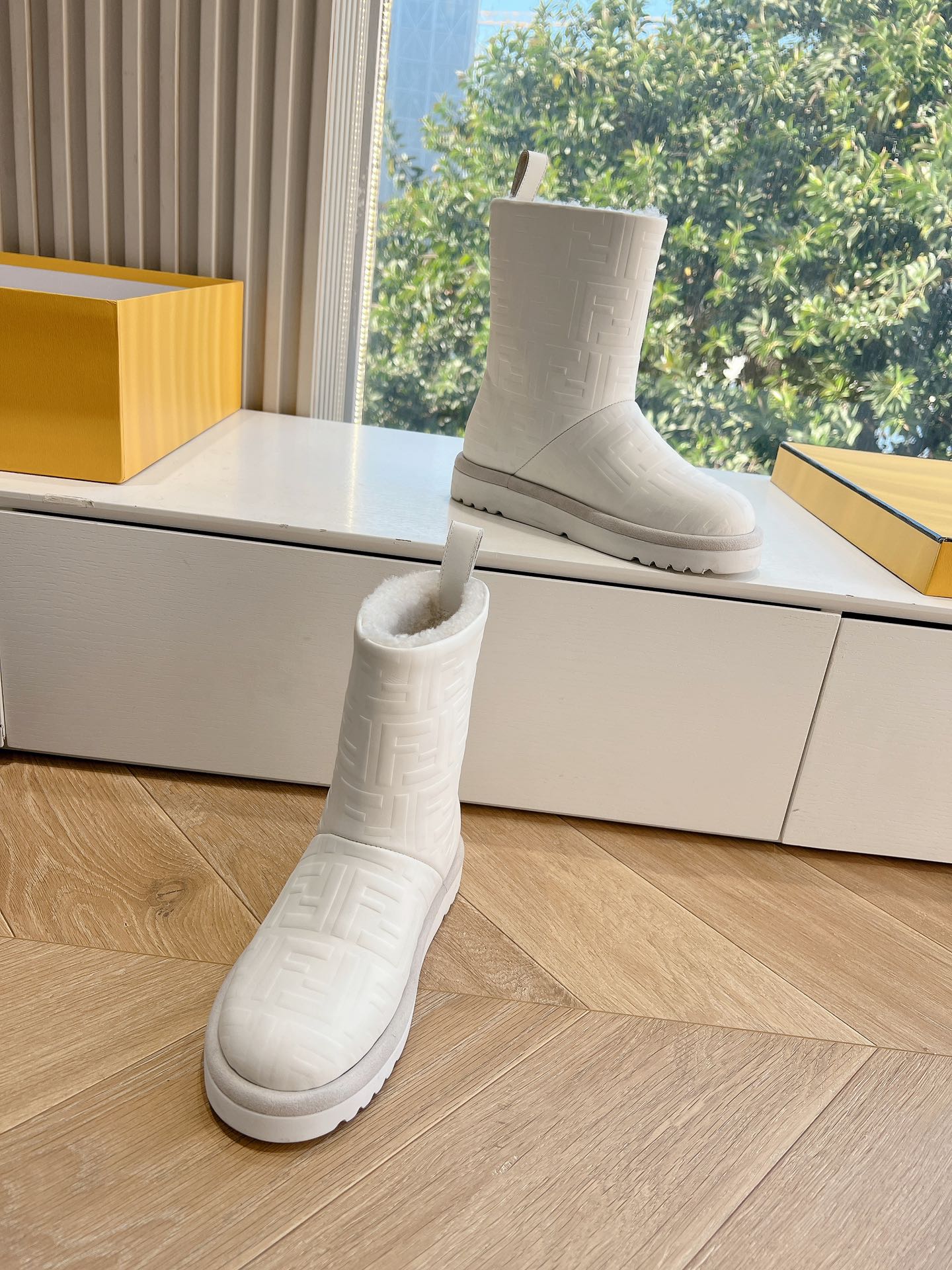 Fendi Apres Chic with FF chamois Boots White Cowhide 475229
