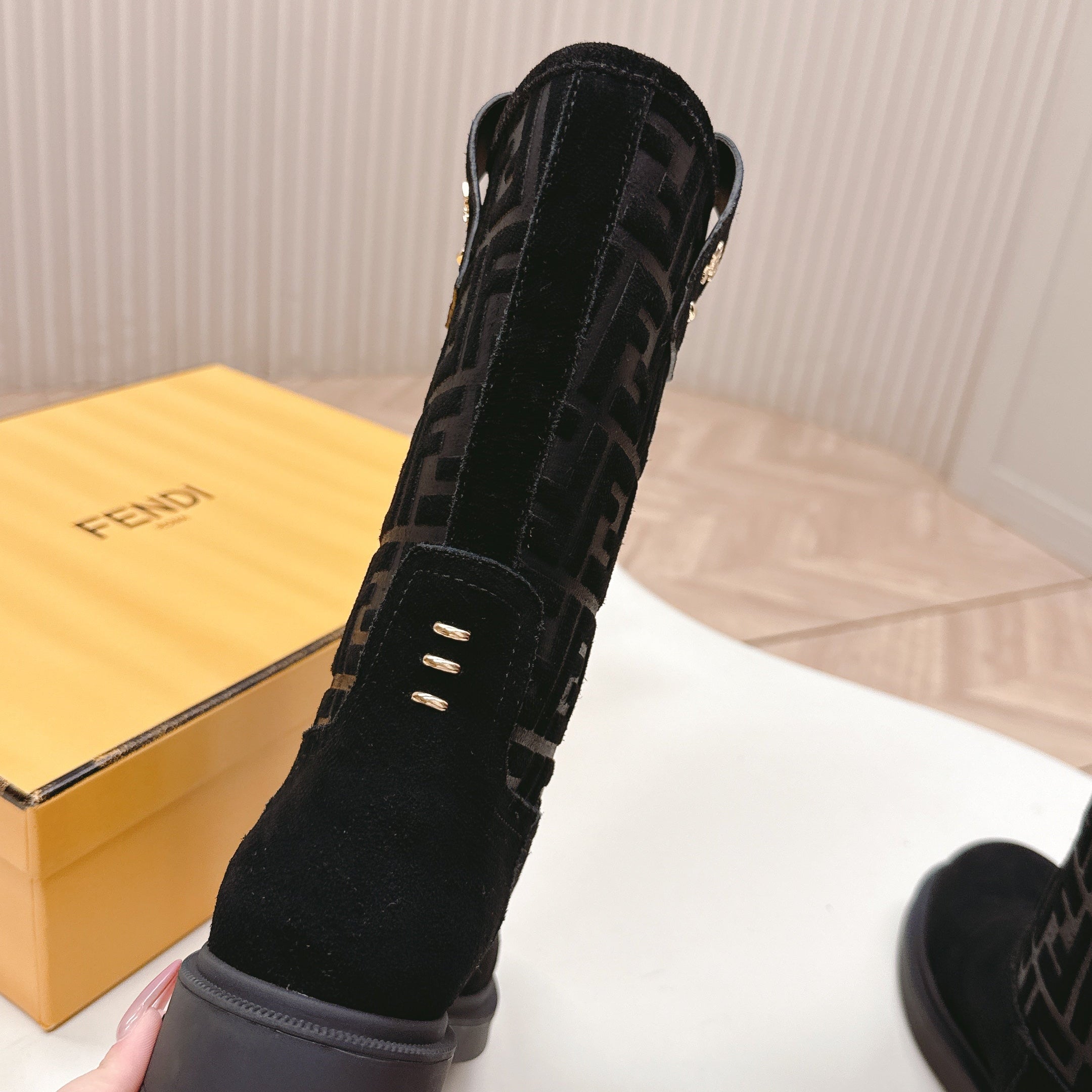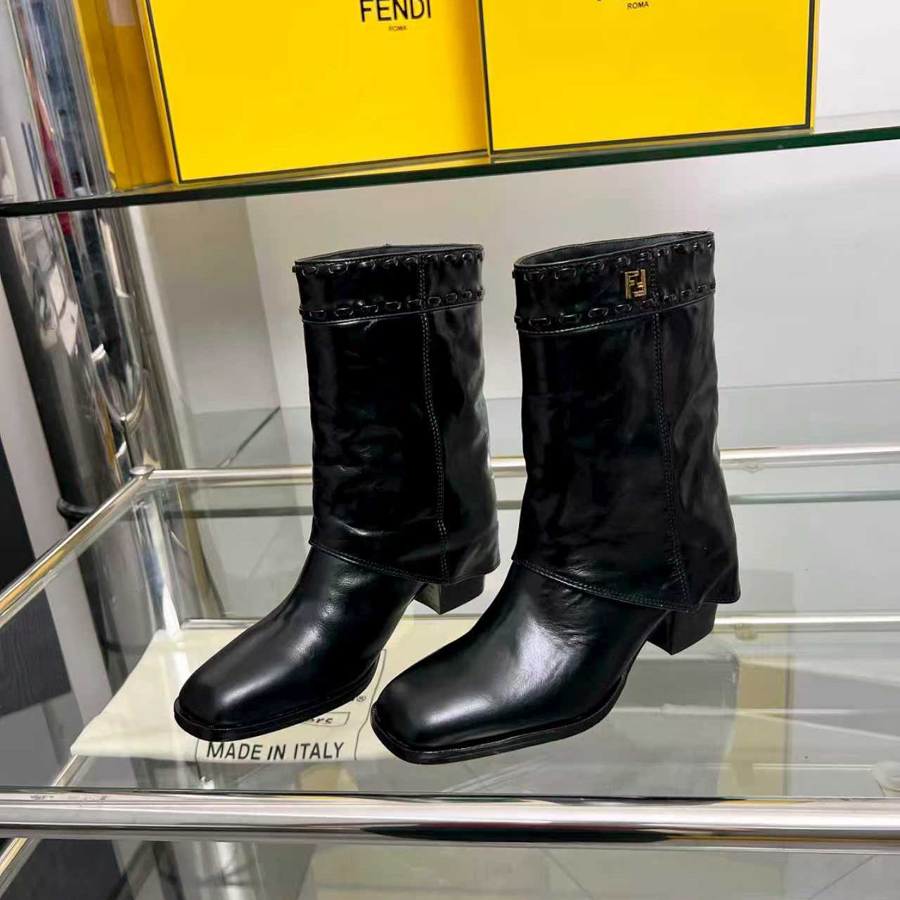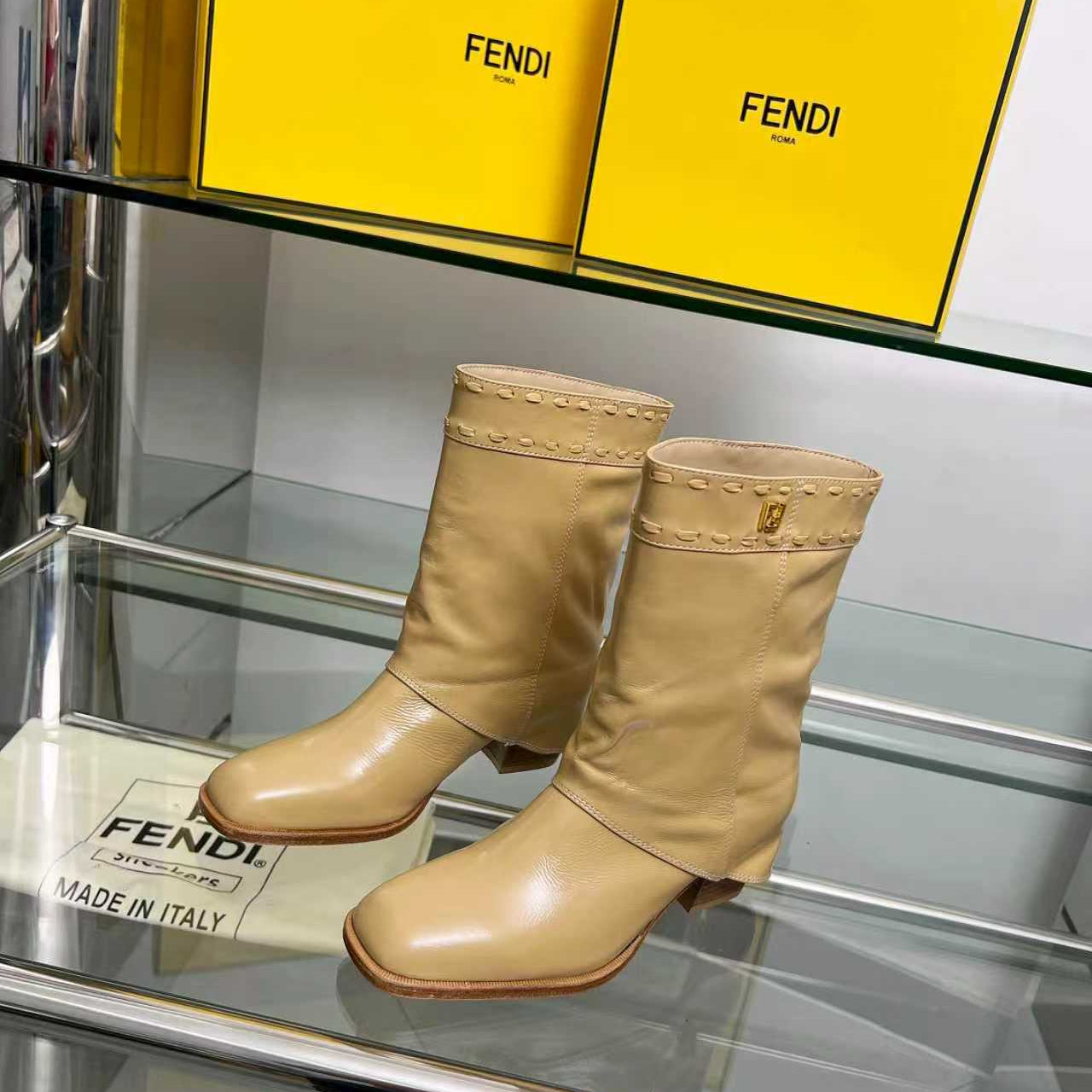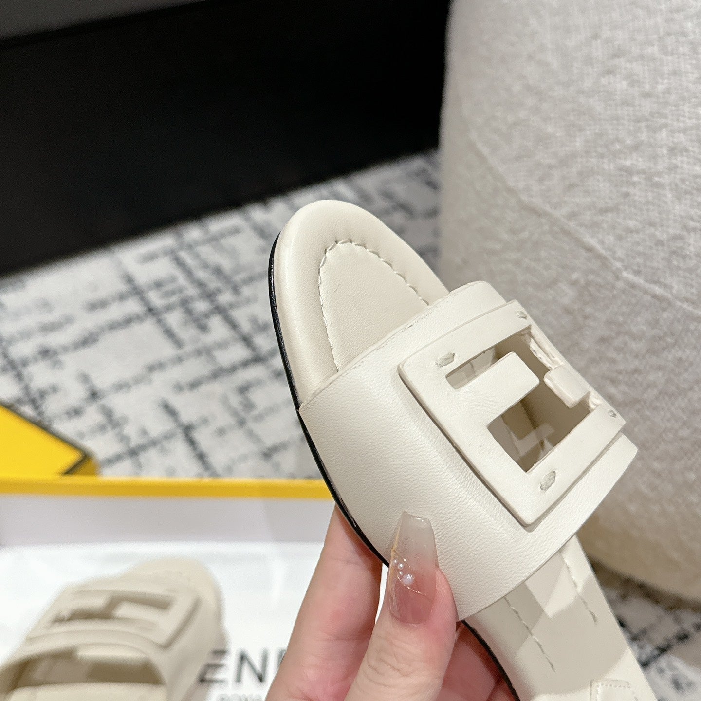 FENDI CASUAL SNEAKER IN GREY CALFSKIN ATTACH RHINSTONES