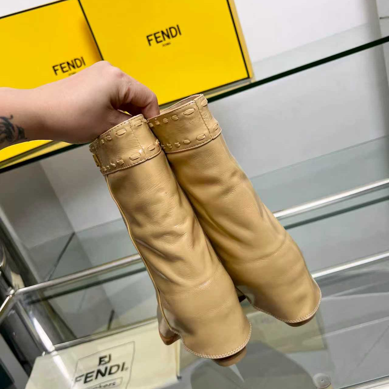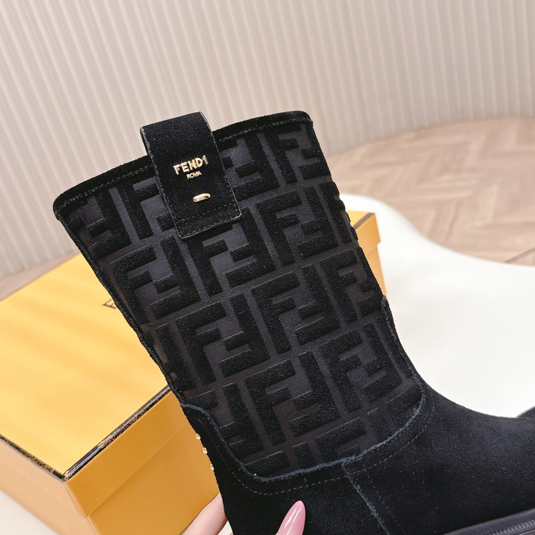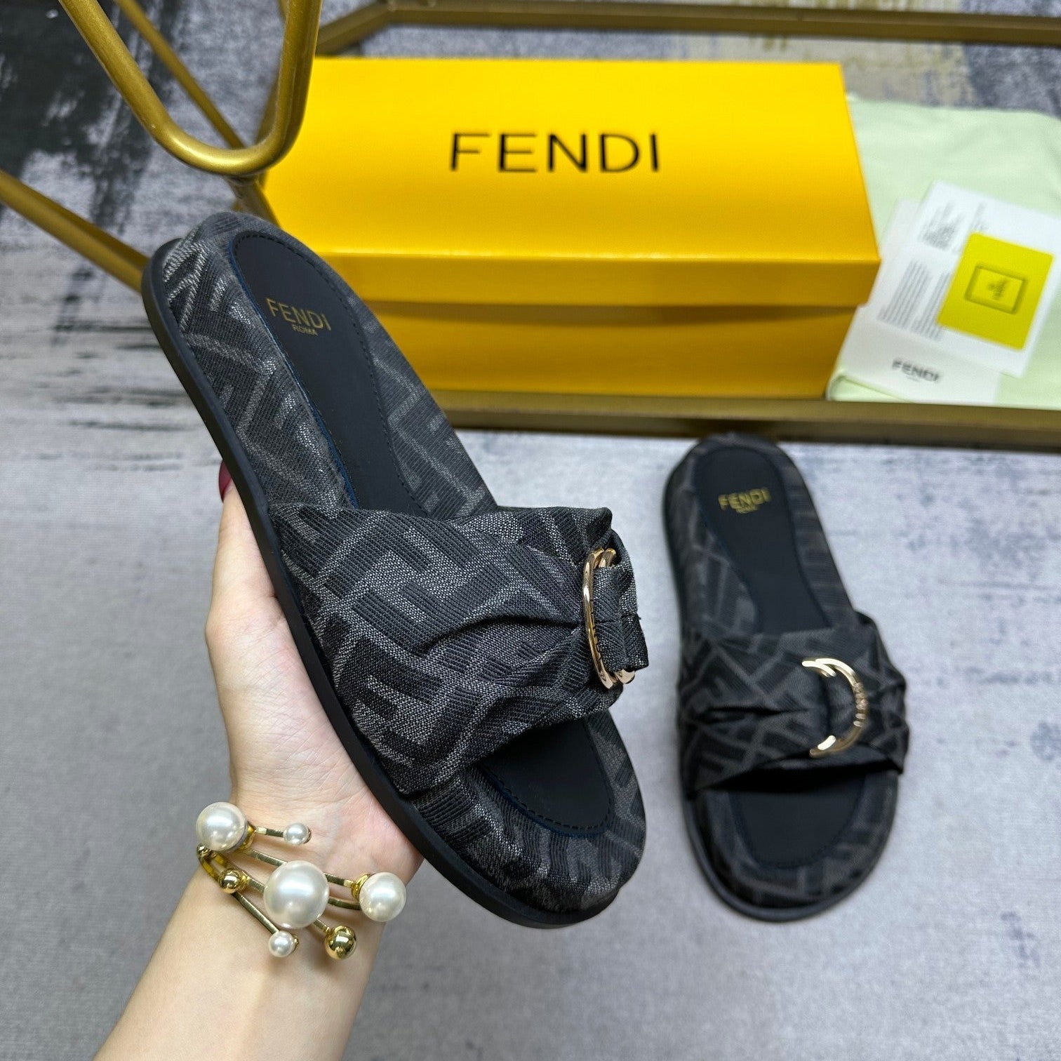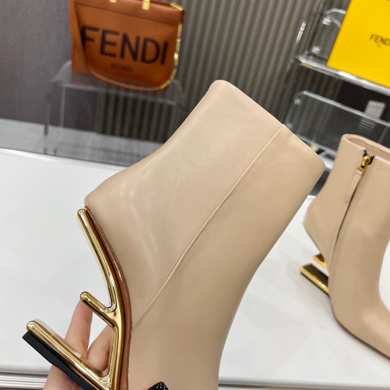 FENDI CASUAL SNEAKER IN GREY CALFSKIN ATTACH RHINSTONES
