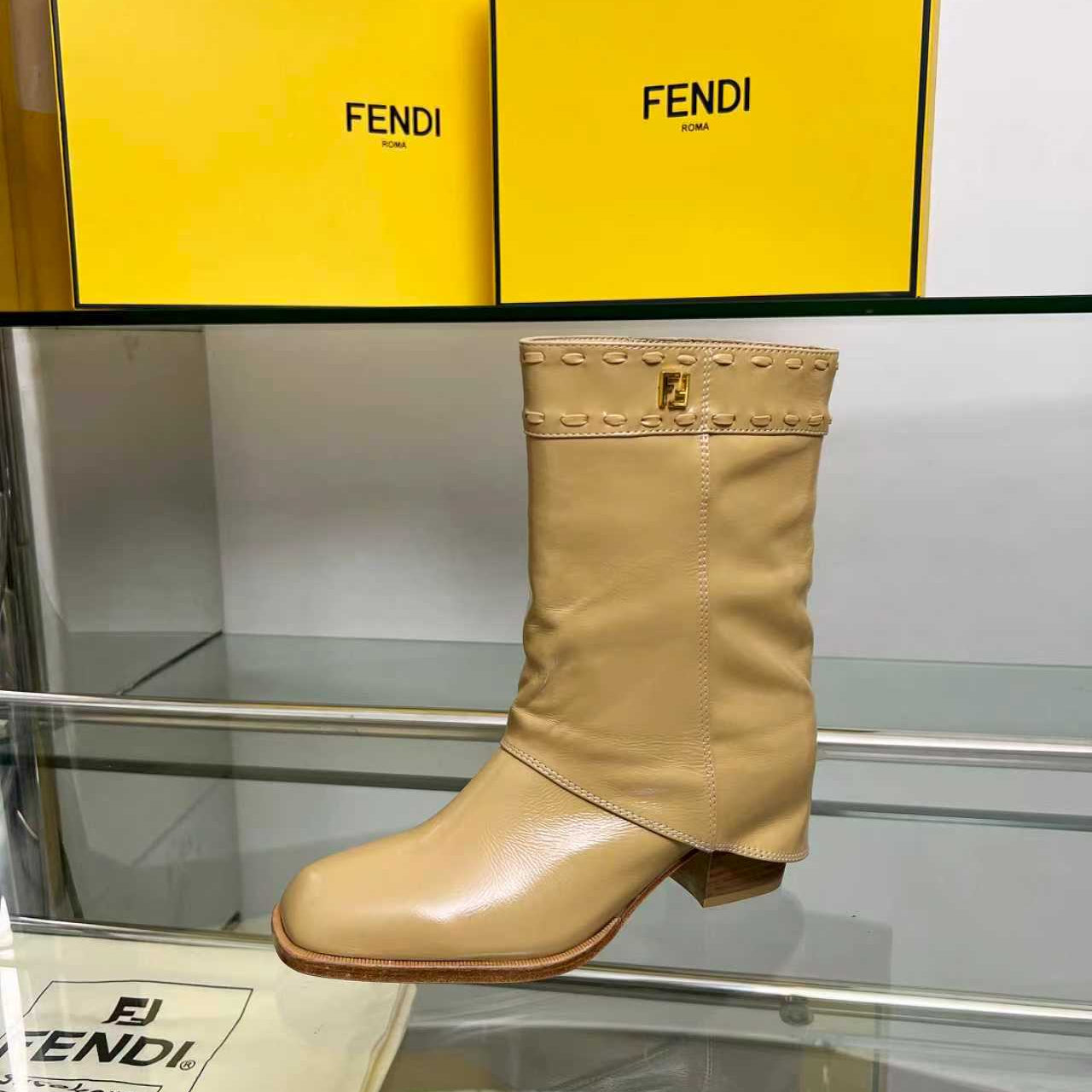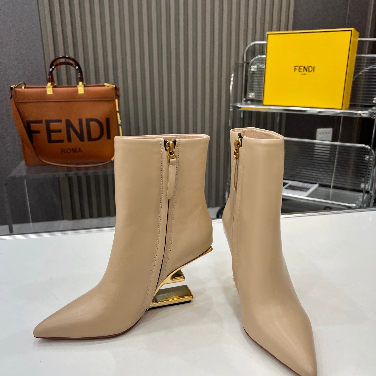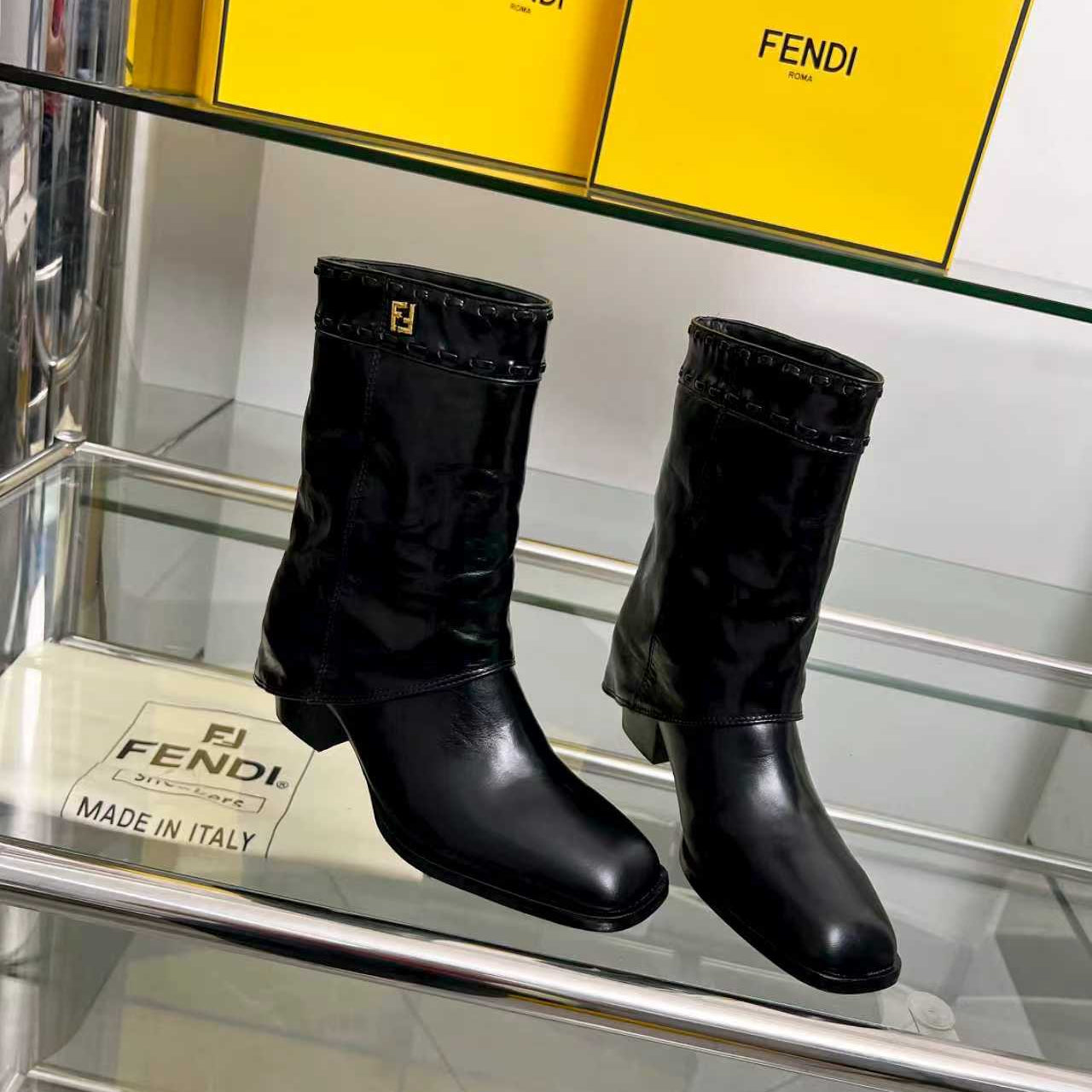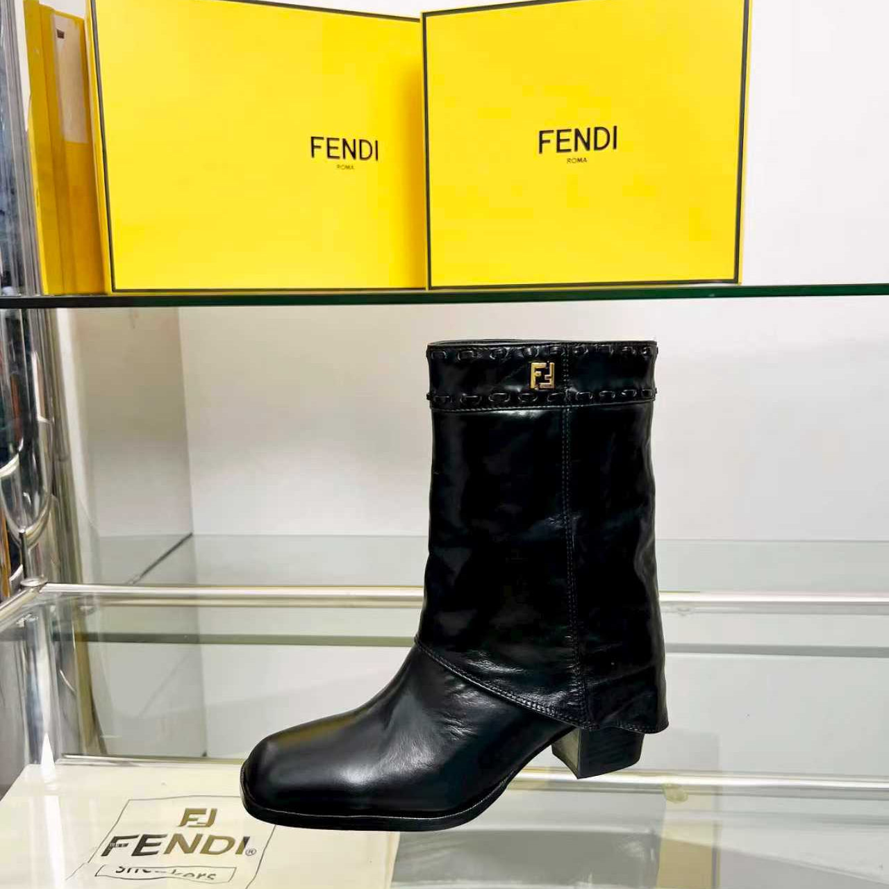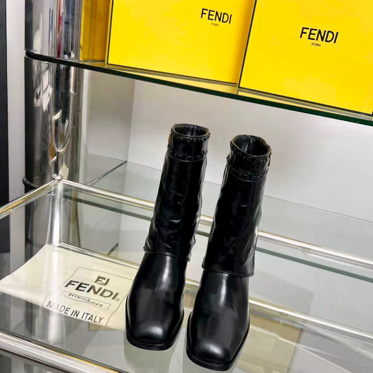 FENDI CASUAL SNEAKER IN GREY CALFSKIN ATTACH RHINSTONES