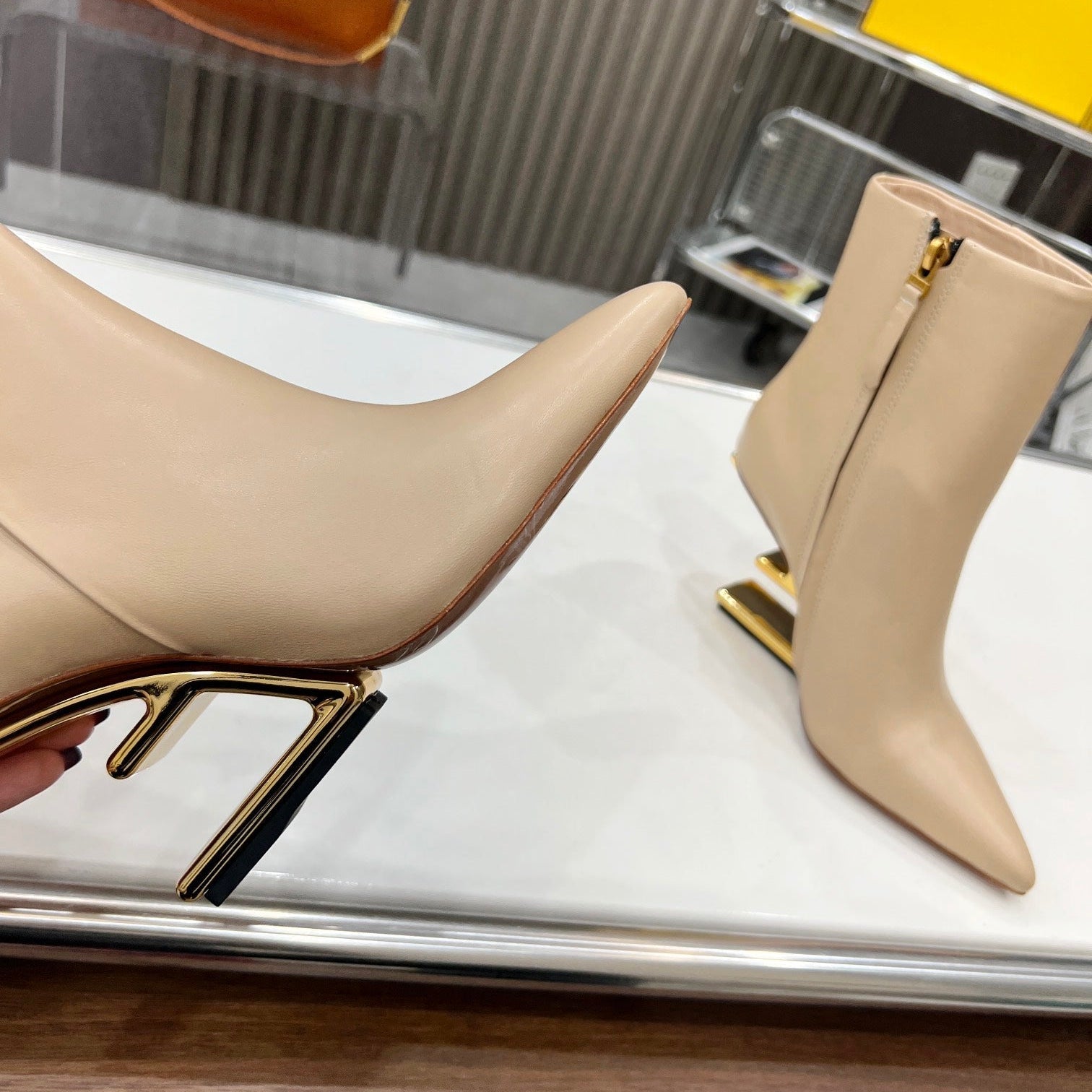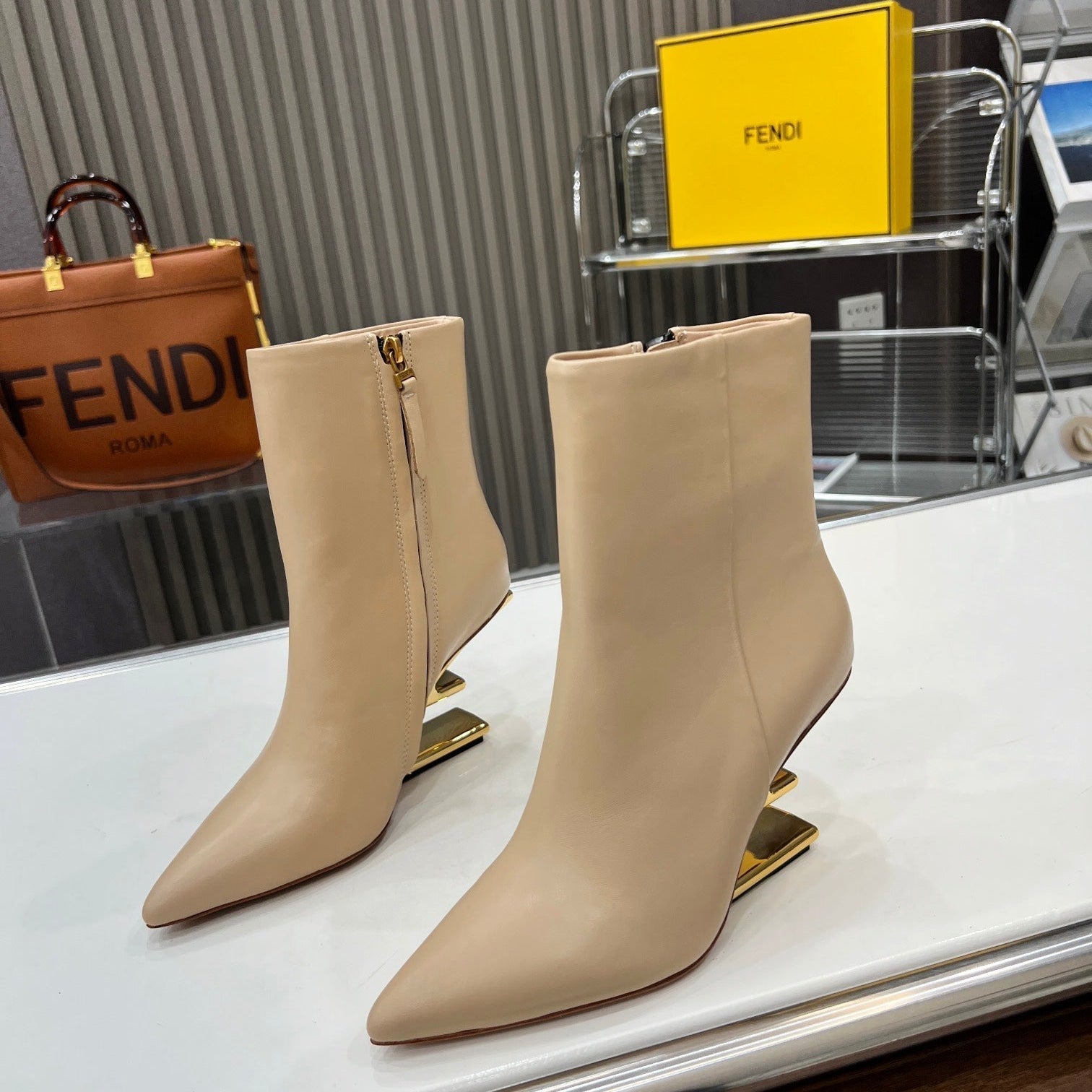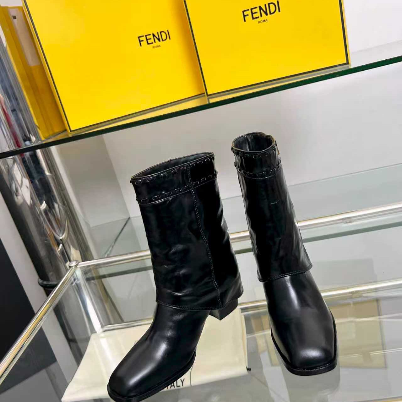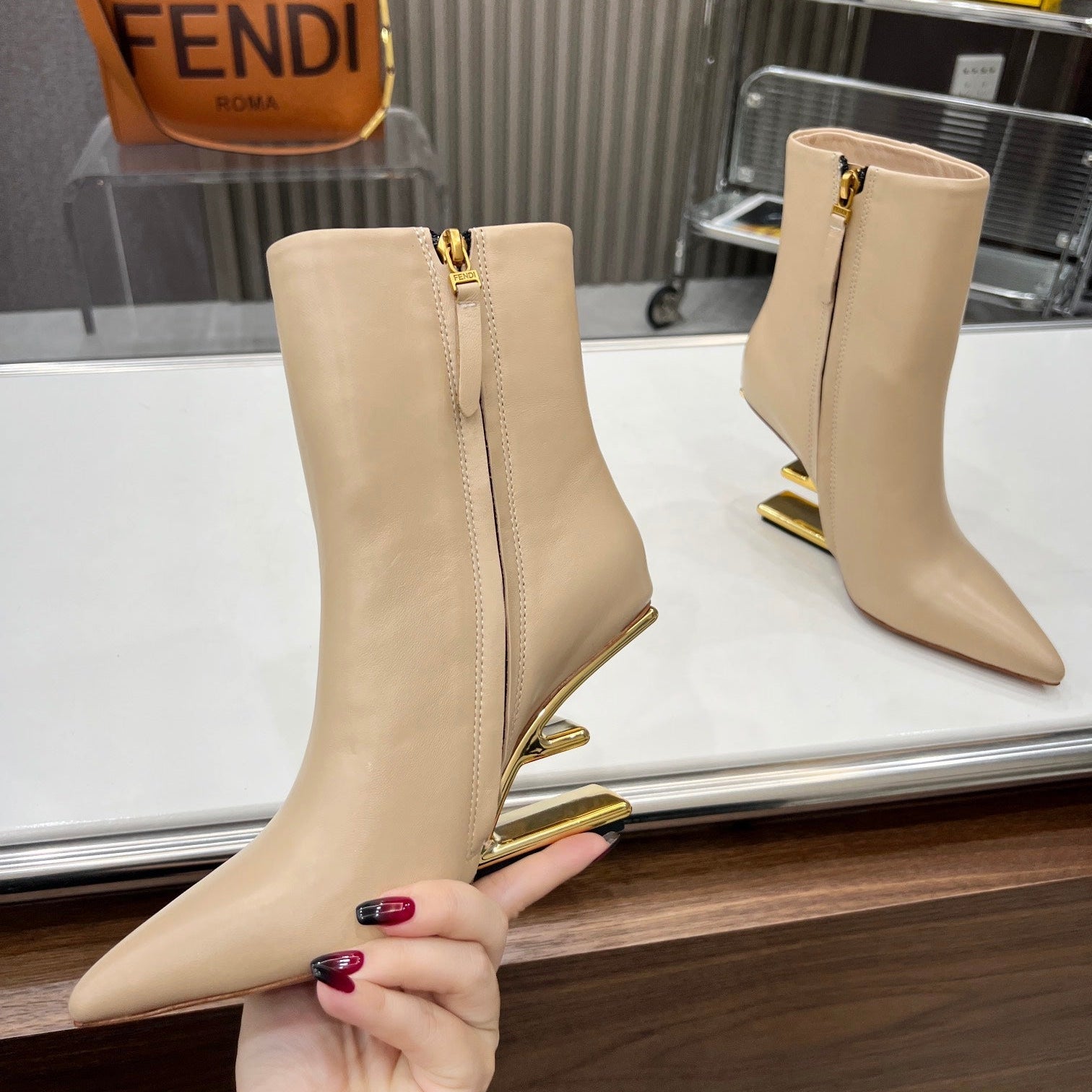 FENDI CASUAL SNEAKER IN GREY CALFSKIN ATTACH RHINSTONES