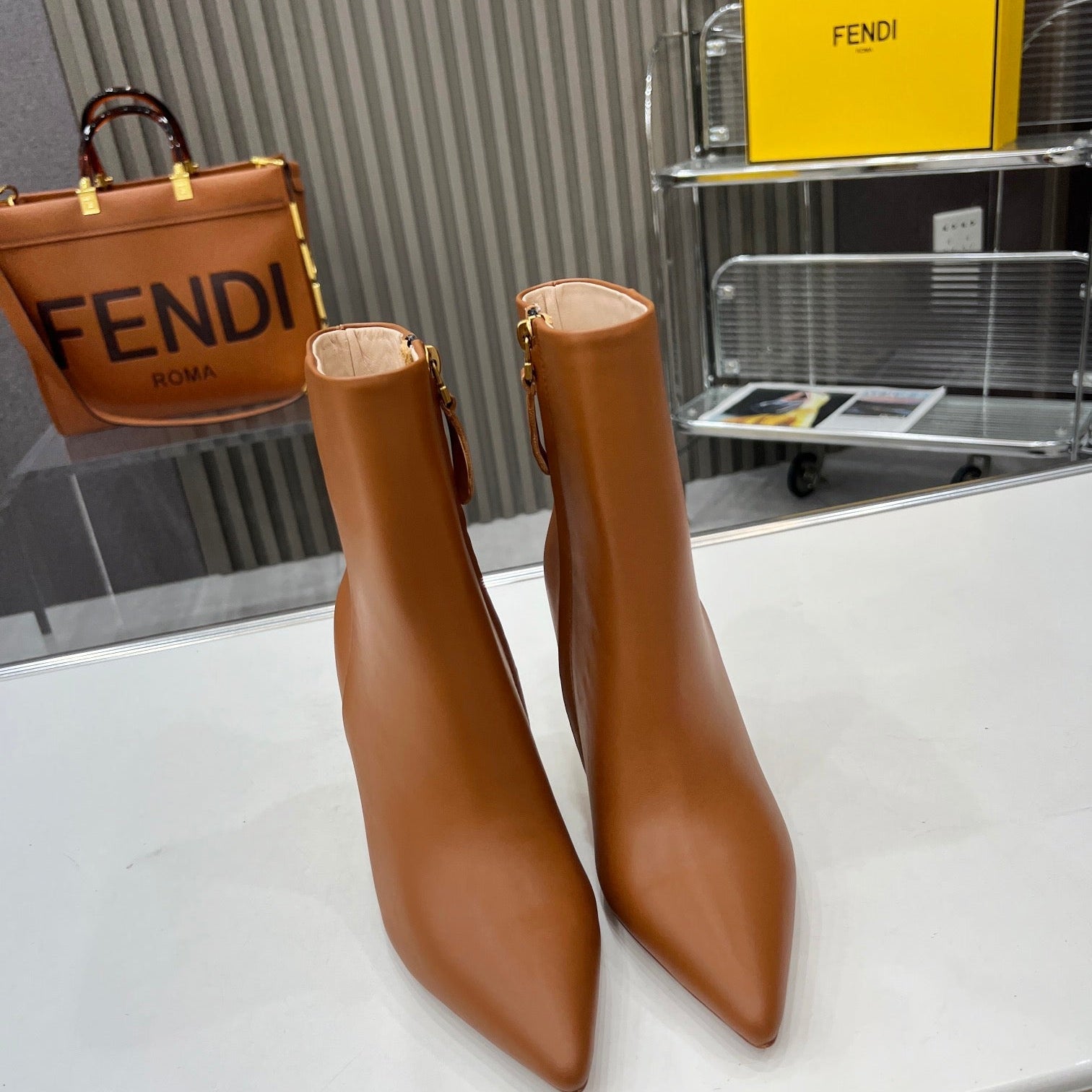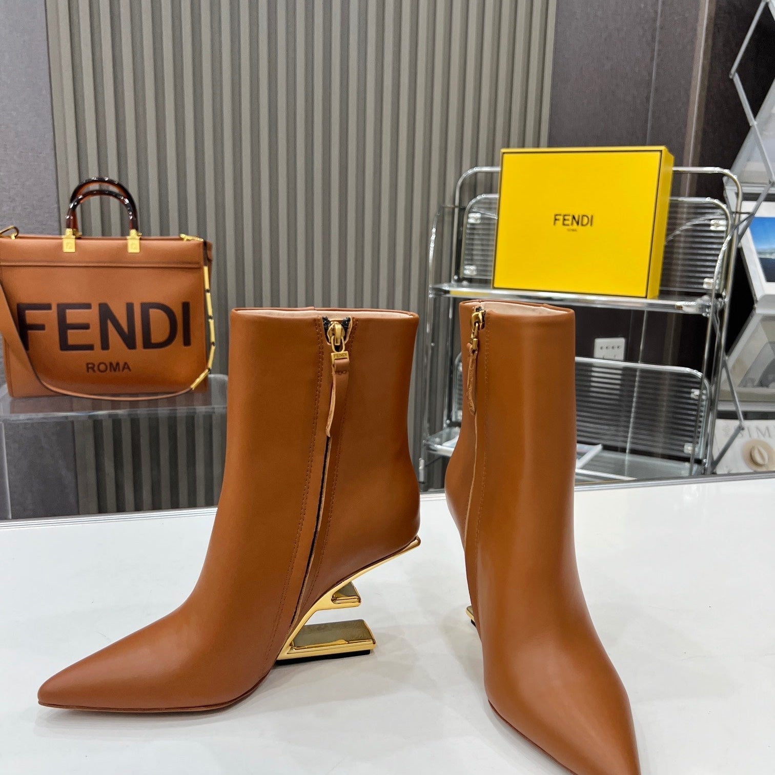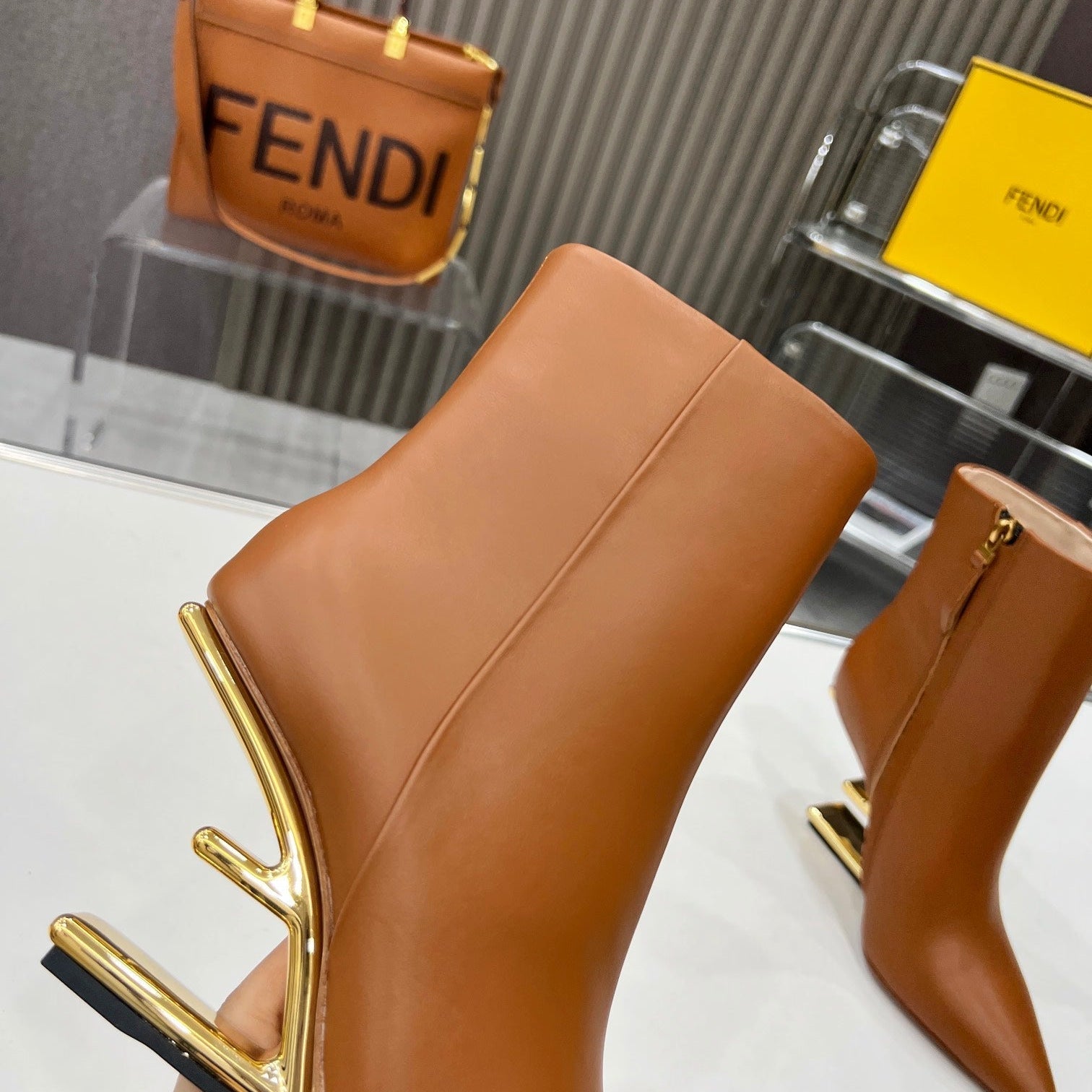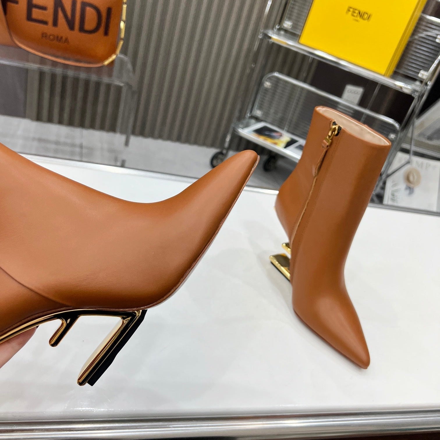 FENDI CASUAL SNEAKER IN GREY CALFSKIN ATTACH RHINSTONES