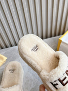 FENDI SLIPPER IN WHITE FUR WITH BROWN LOGO
